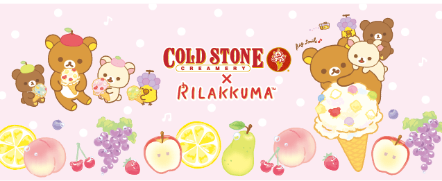 リラックマは、 サンエックス株式会社から生み出されたキャラクターです。 ”フルーツいっぱいのアイスクリームで、 リラックマも最高にハッピーに♪”をテーマに、 コールドストーンとのコラボレーションメニューが実現いたしました。