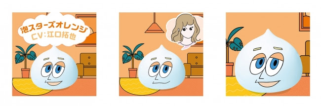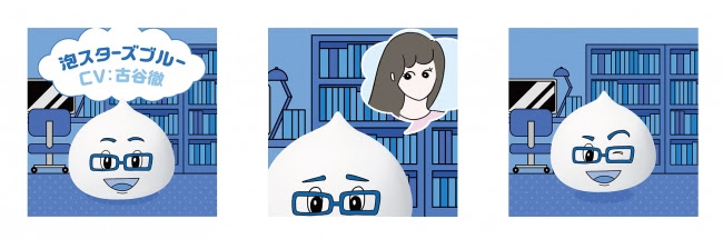 今回、 ヘアスタイルの悩みにこたえるのは、 イケメンボイス の 「泡」 。 泡(フォーム剤)のヘアスタイリングが特長の「プロスタイル」の化身として生まれたキャラクター 「泡スターズ」 が、 ヘアスタイルに悩むツイートを見つけると、 リプライ動画でこたえます。 イケメンボイスの 「泡スターズ」 の 声 は、 古谷徹 さん、 江口拓也 さん、小野賢章 さん、 杉田智和 さん、 小野友樹 さんの、 5人の声優が担当しました。