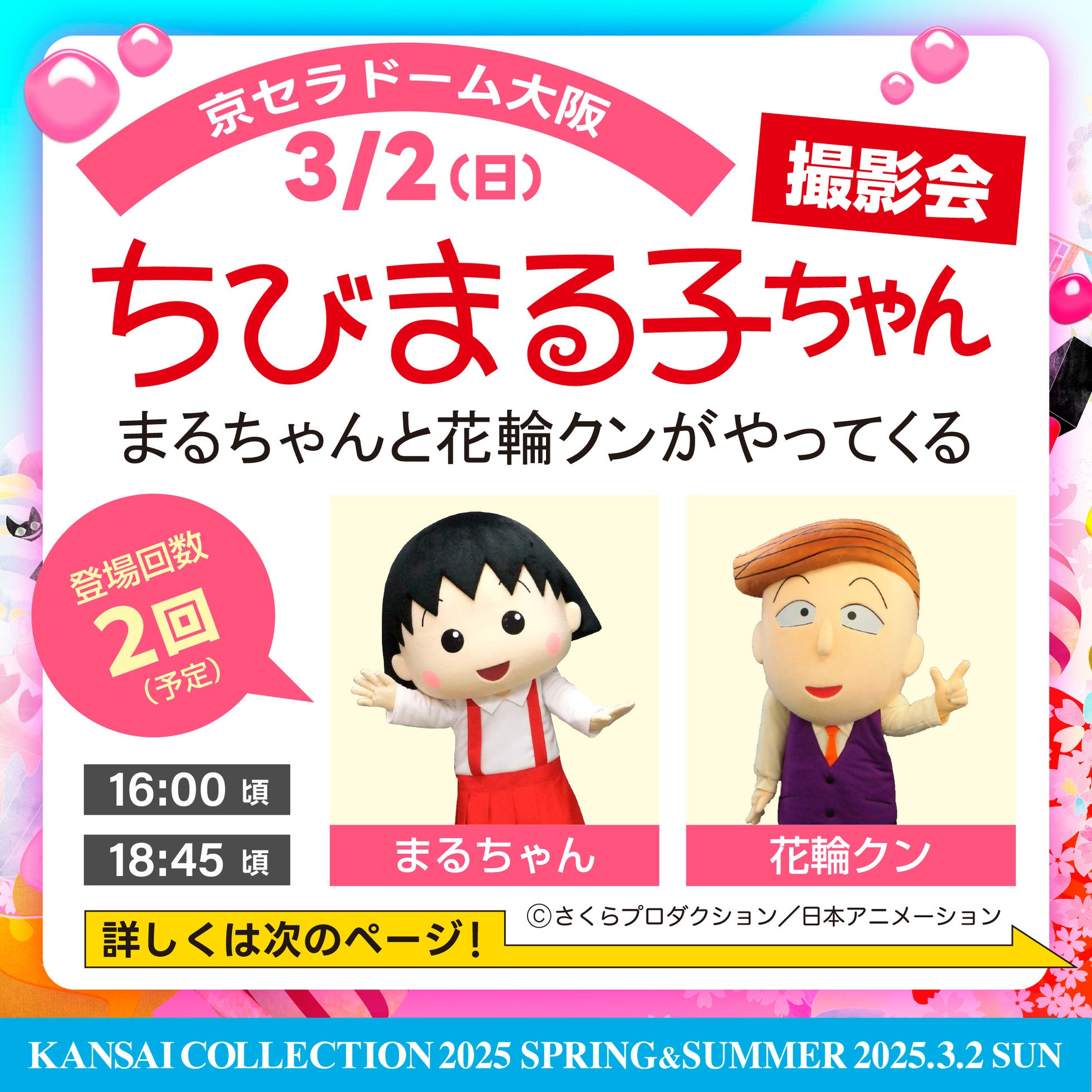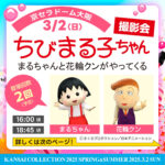 16:00頃と18:45頃に、LIVE配信ブースにまるちゃんと花輪クンが登場し、来場者と一緒に撮影会を開催します!