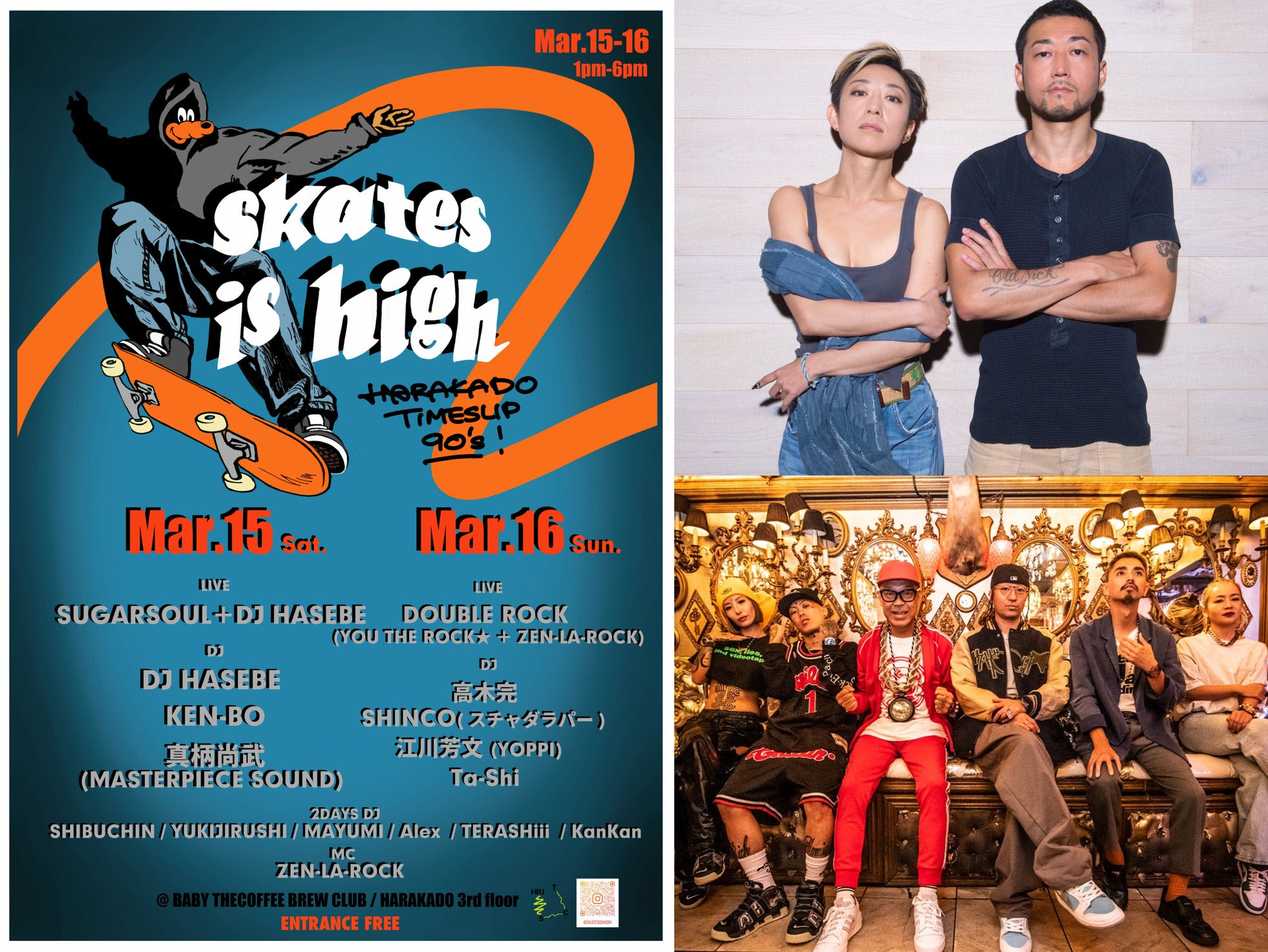 3月15日(土)~3月16日(日)の2日間、90’s(ナインティーズ)をテーマに当時の雰囲気を再現したイベントを開催します。 SUGARSOUL+DJ HASEBE、DOUBLE ROCK(YOU THE ROCK★ × ZEN-LA-ROCK)のライブやトークショーに、SHINCO(スチャダラパー)、江川芳文、高木完がDJとしてラインナップ。店内には当時のレコードやビンテージTシャツに雑誌を展示します。