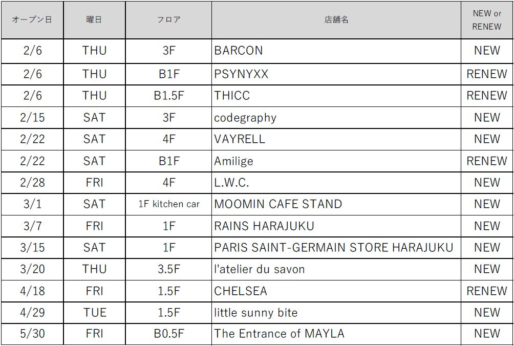 ラフォーレ原宿は2月より随時、2025年春のリニューアルを実施しています。