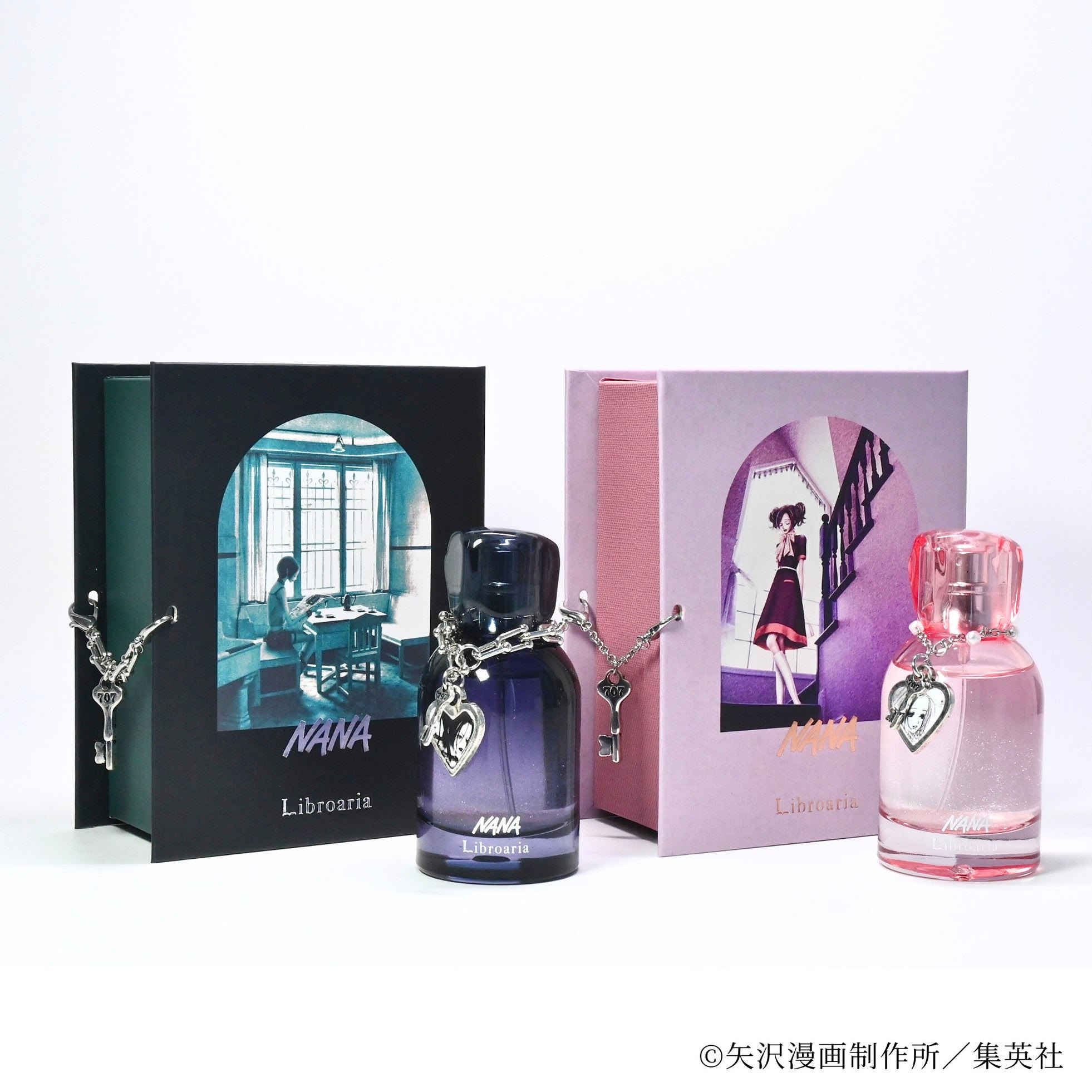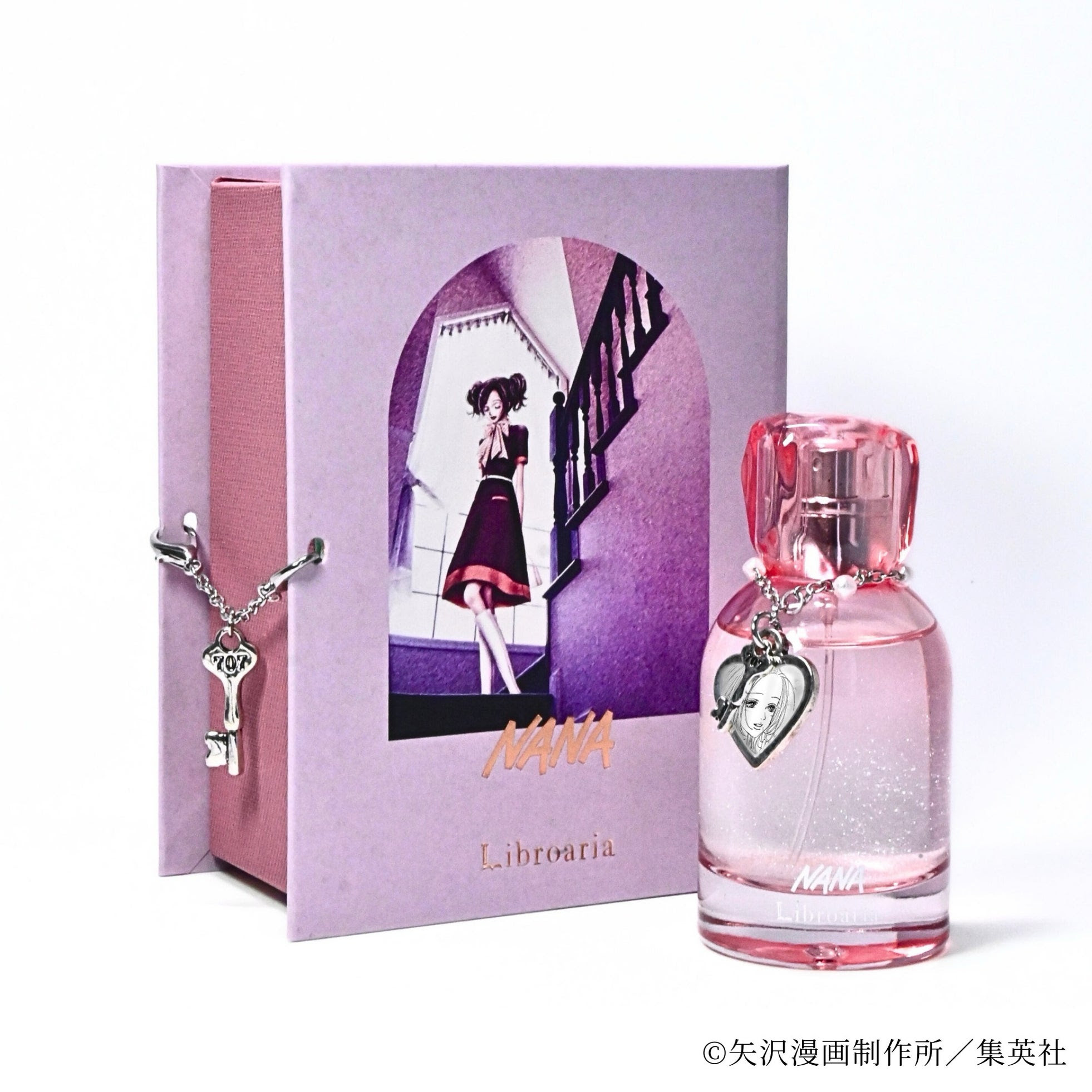 「本を読む所作や空間まで彩りたい」という願いを形にする、出版社生まれのコスメブランド「Libroaria」。今回のPOP UP SHOPでは、矢沢あいの名作『NANA』とコラボレーションした香水を発売します。ヒロイン「大崎ナナ」と「小松奈々」からインスピレーションを得た2つの香りは、振るたびにキラキラと輝くラメ香水仕様で、707号室の鍵のチャームをまとっています。