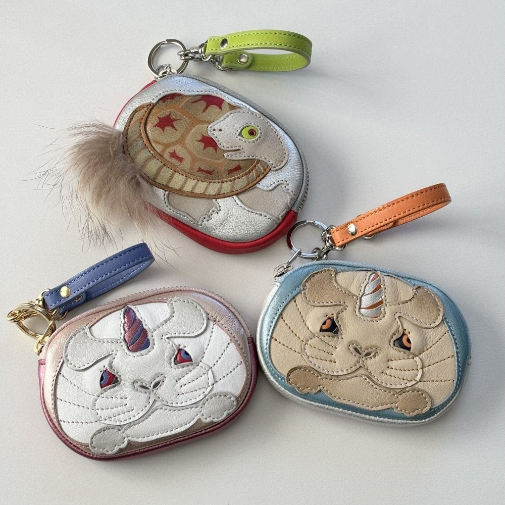 日本の牛革を使用した丸いお財布“マメポ(R)”を販売。極めて傷みにくく、磁気を通すためパスケースとしての使用も可能なマメポには、持ち手コードも付属。表面には和モチーフ・妖怪・動物など、少し癖のあるデザインが施された、機能性もデザイン性も高いお財布です。