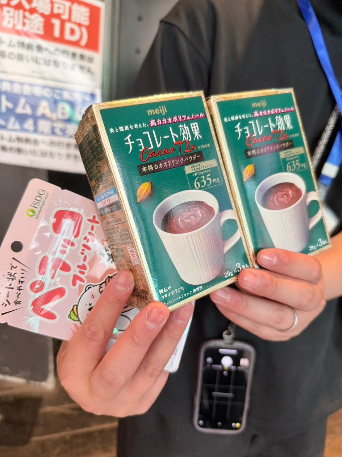 のむチョコレート『チョコレート効果 本格カカオドリンクパウダー』(3袋入り/明治)とシート状で食べやすい『ぺラッコ フルーツシート』(ピンクグレープフルーツ&梅味/iSDG)がイベントロゴ入りのオリジナルな袋に入れられて、配られていた。こういうアイテムがもらえるアイドルフェスは珍しかったかも!!!!ライブで消費したカロリーをここで回復。