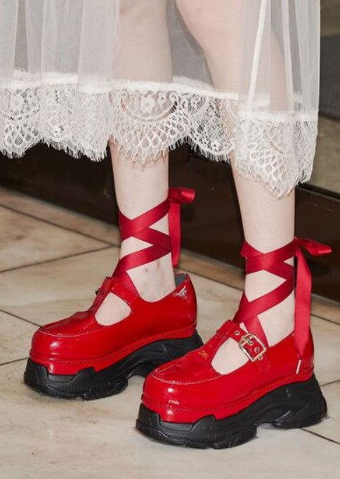 コーデを決めるまぶしい赤と、ボリュームのあるソールが目を引きます。特に低身長さんにおすすめ!