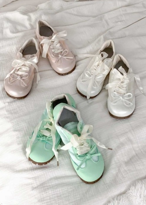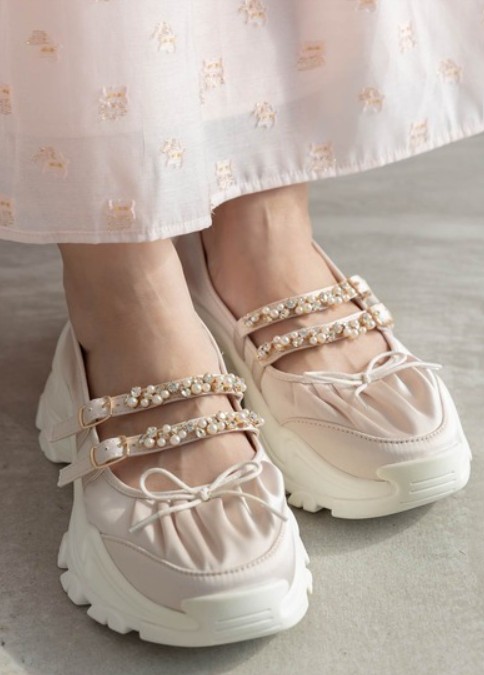 これまではトップスやスカートなどが代表的なアイテムでしたが、今は「バレエコアスニーカー」が大人気!