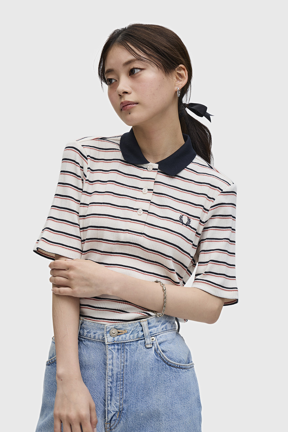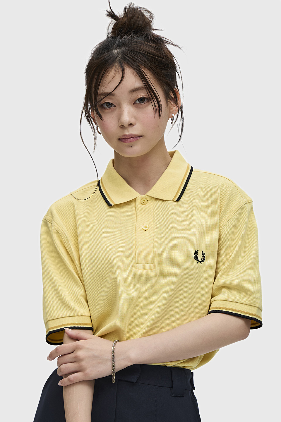 きれい目×スポーティーと言えばフレッドペリー。襟がきちんと感を出しながらラフさも兼ね備えています。