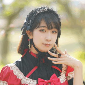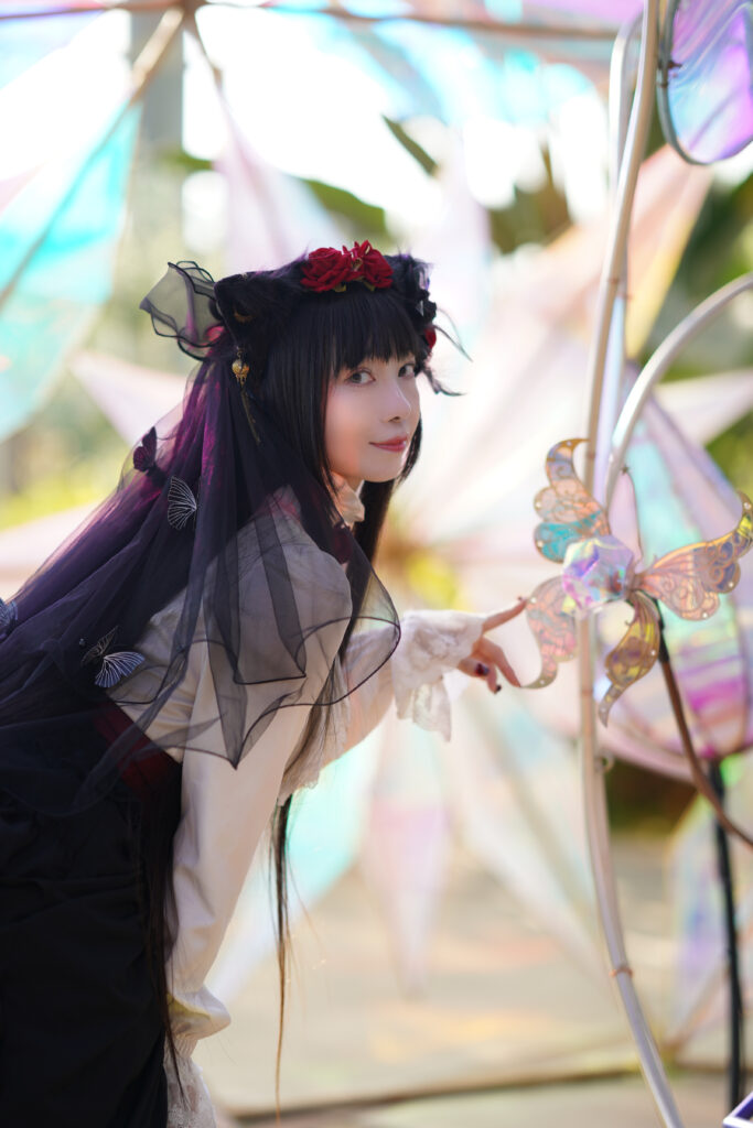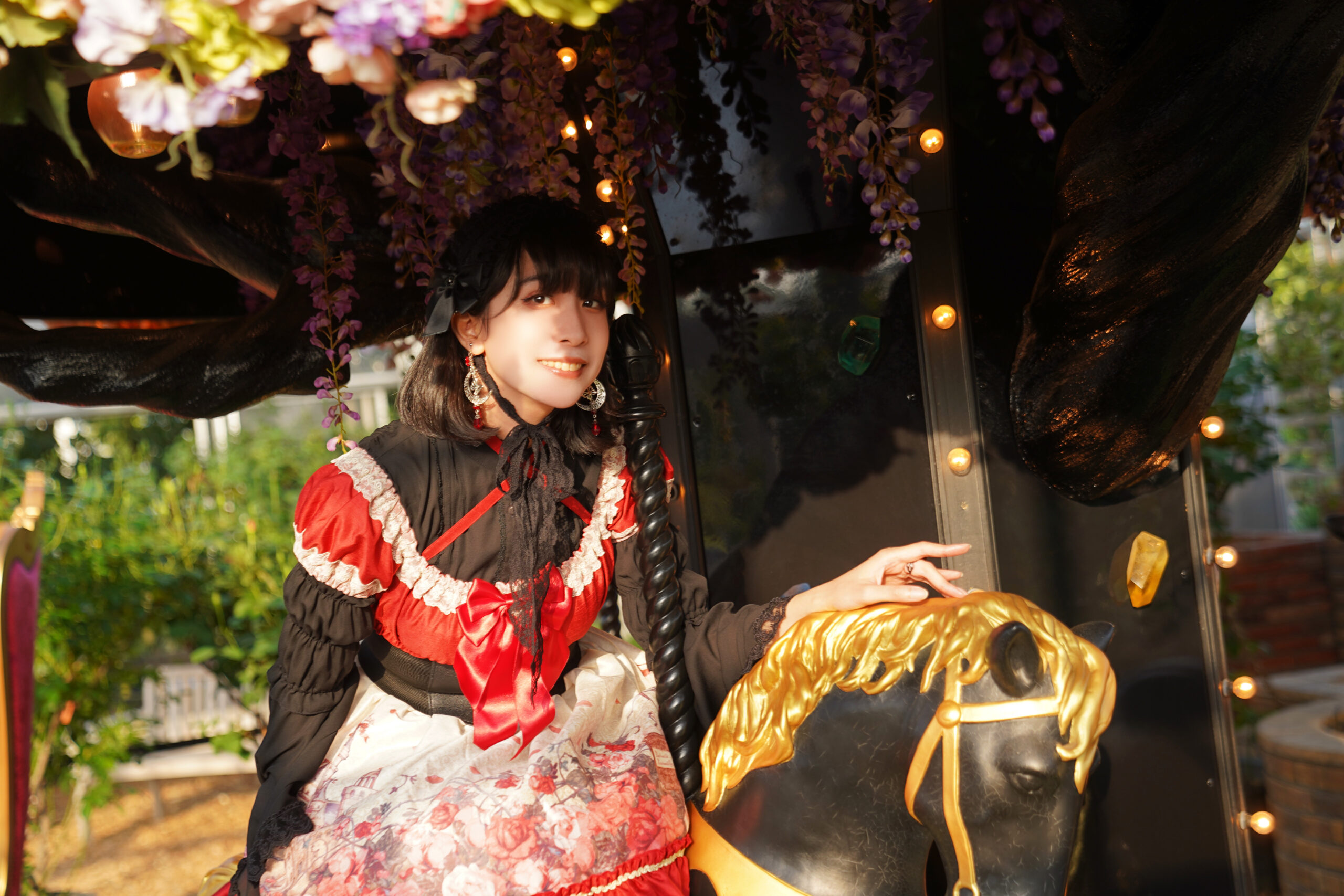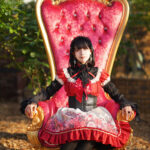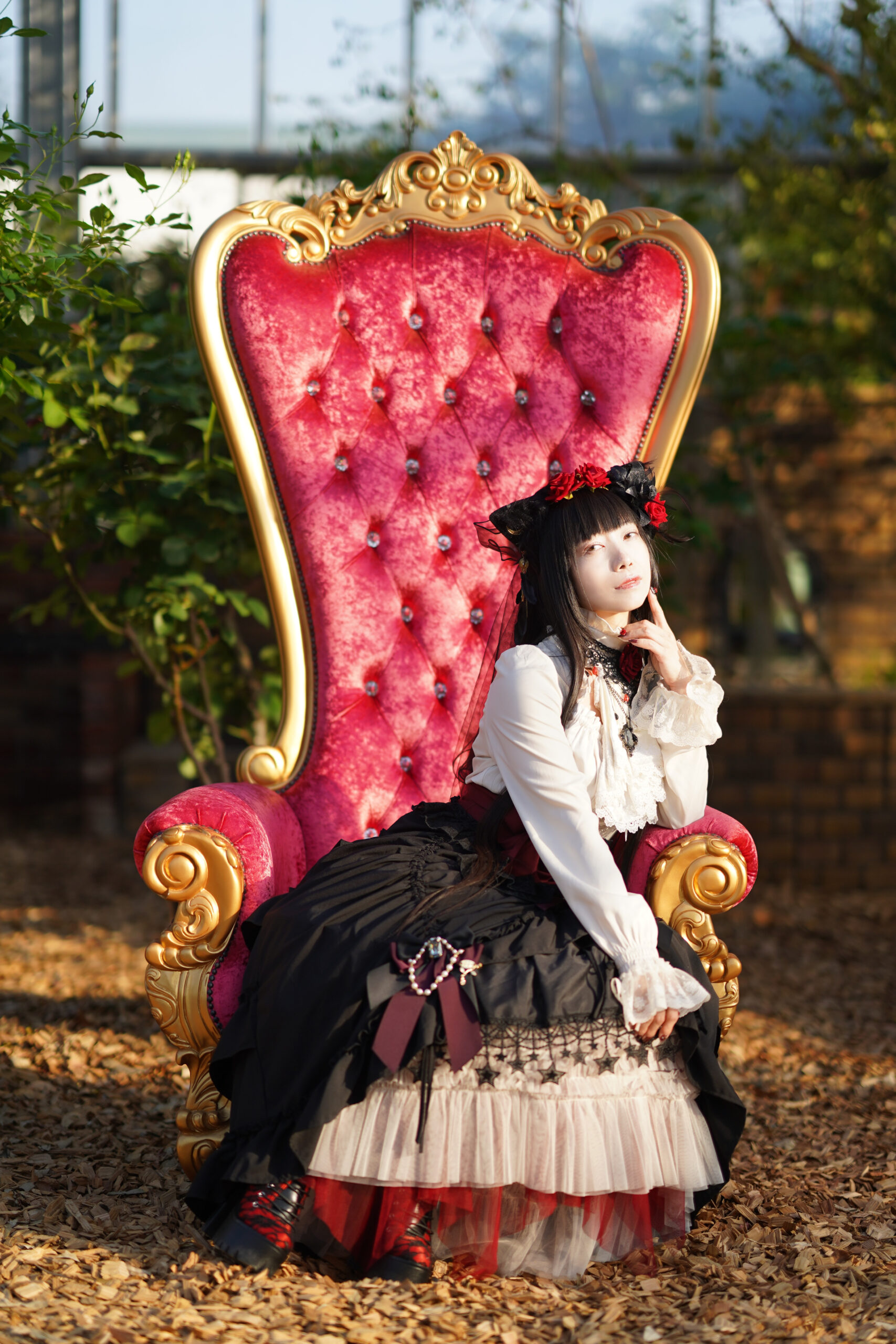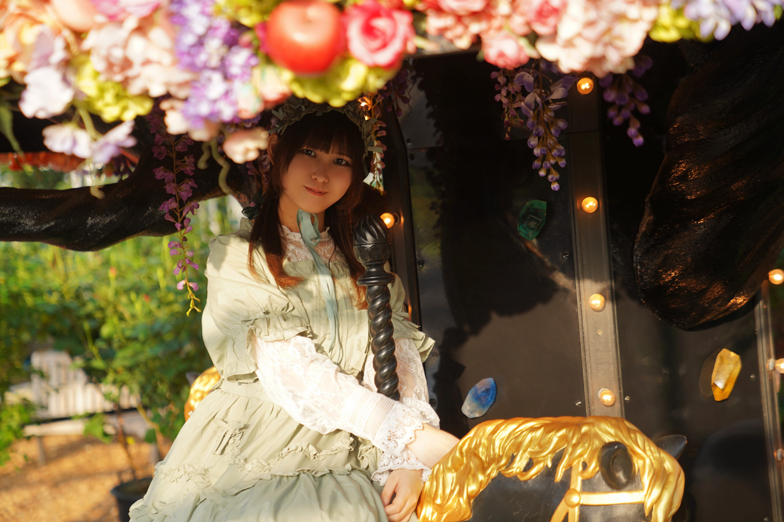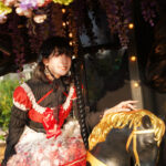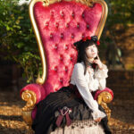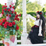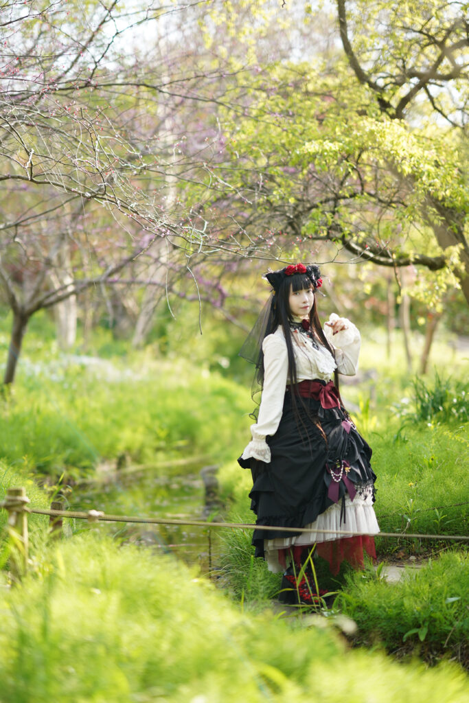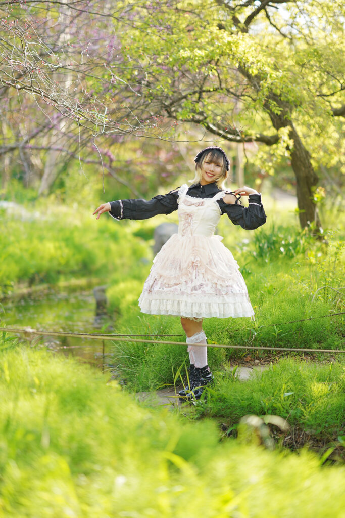 ヘッドドレスや胸元、靴下にまでバラのモチーフを散りばめた、こだわりたっぷりのスタイルは、まるでバラ園の一部になったかのよう♪