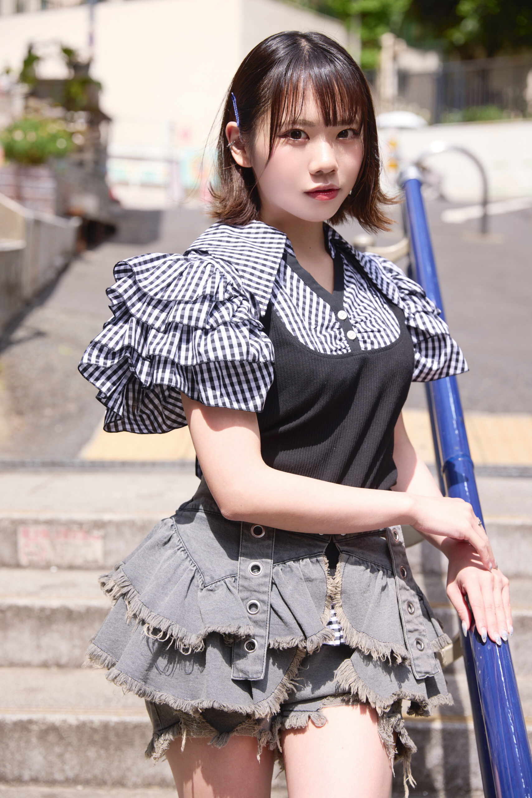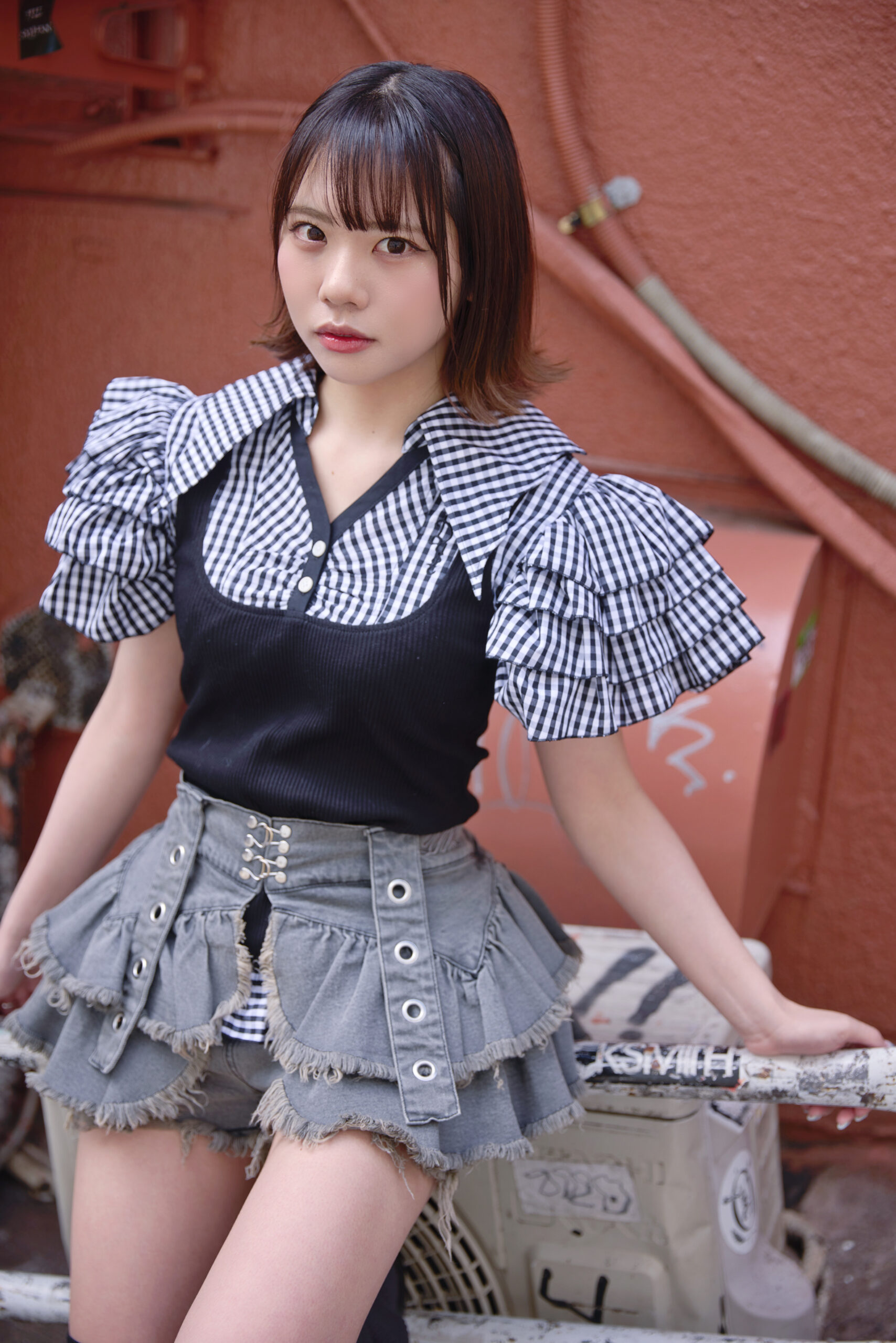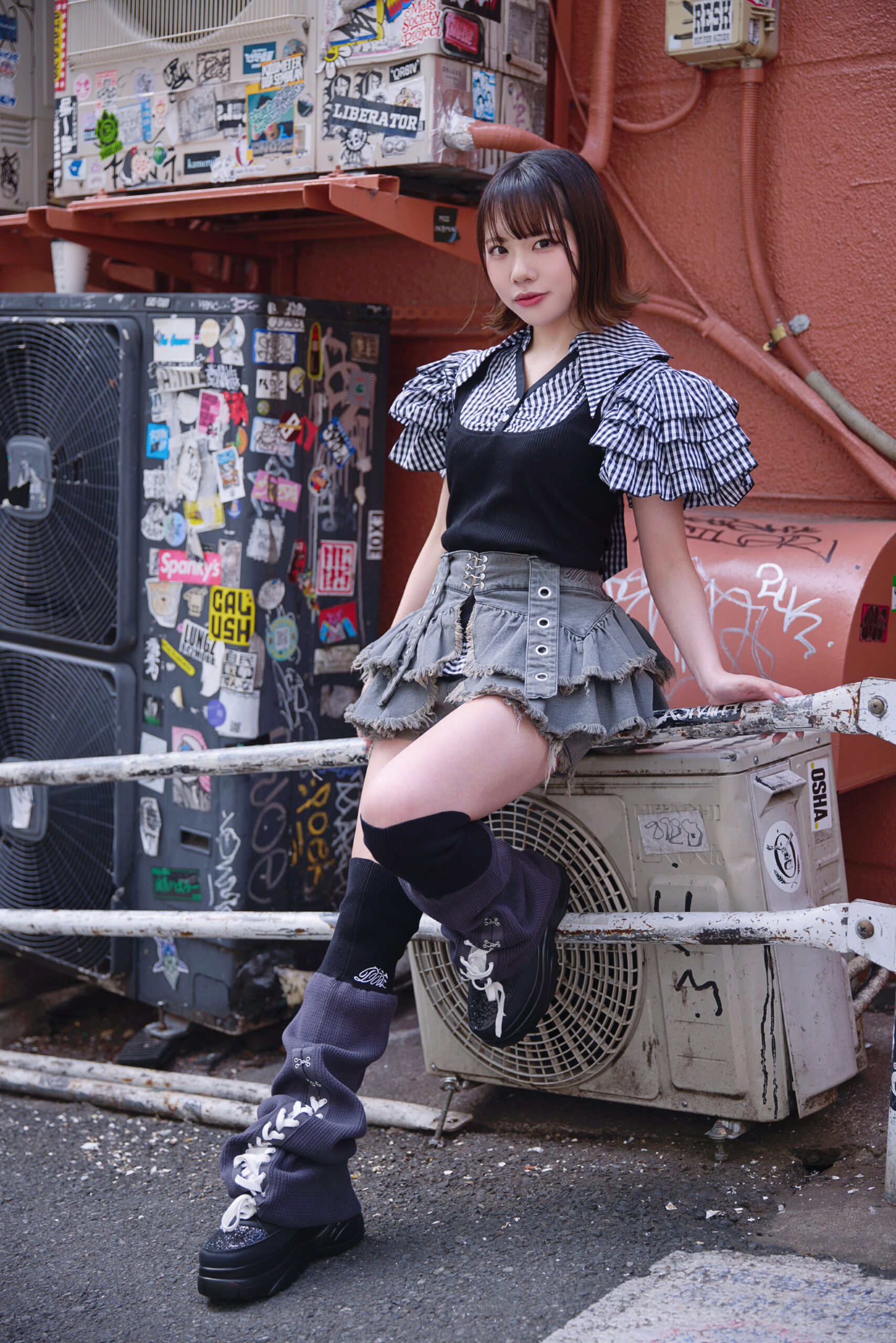 雨已耶いちかちゃんはチェックフリルスカートが目を引くパンクコーデ