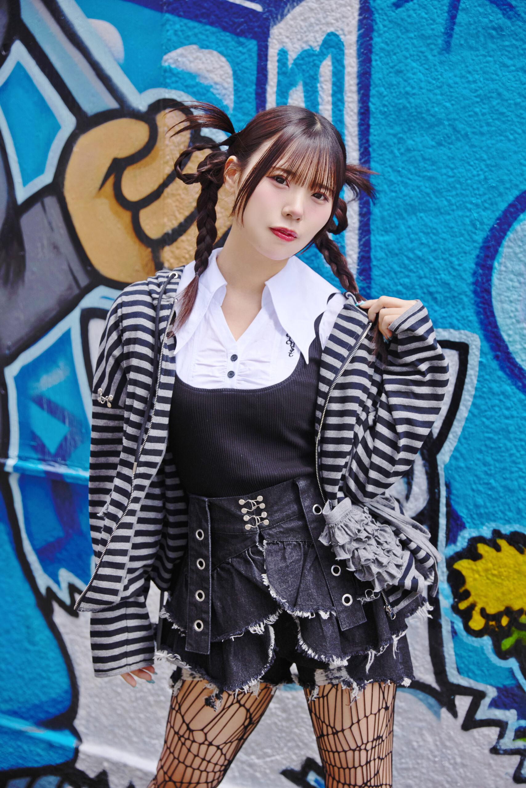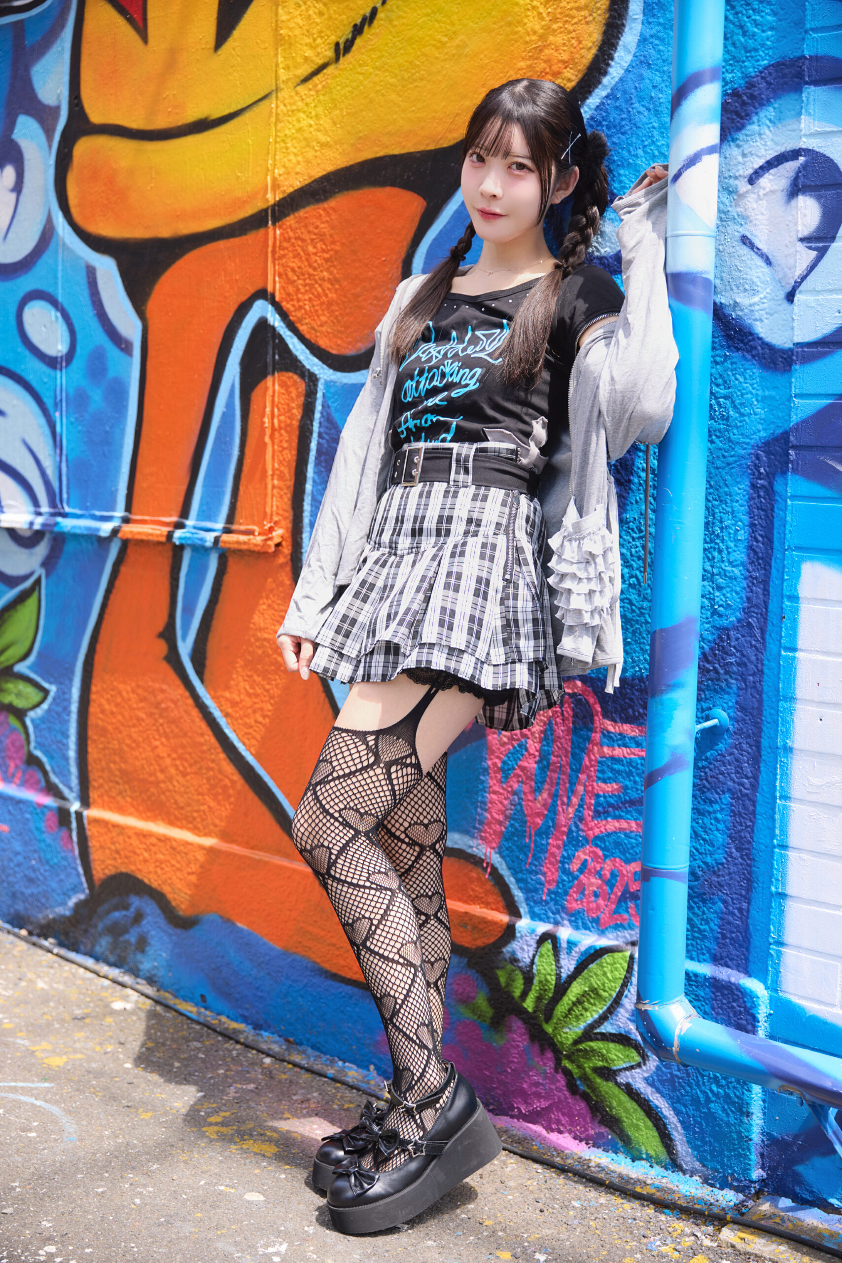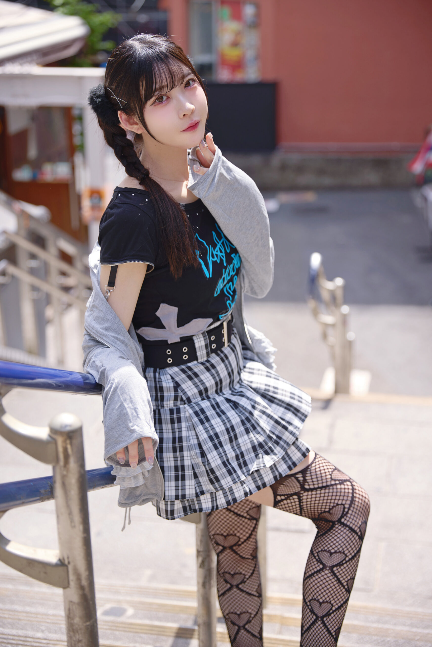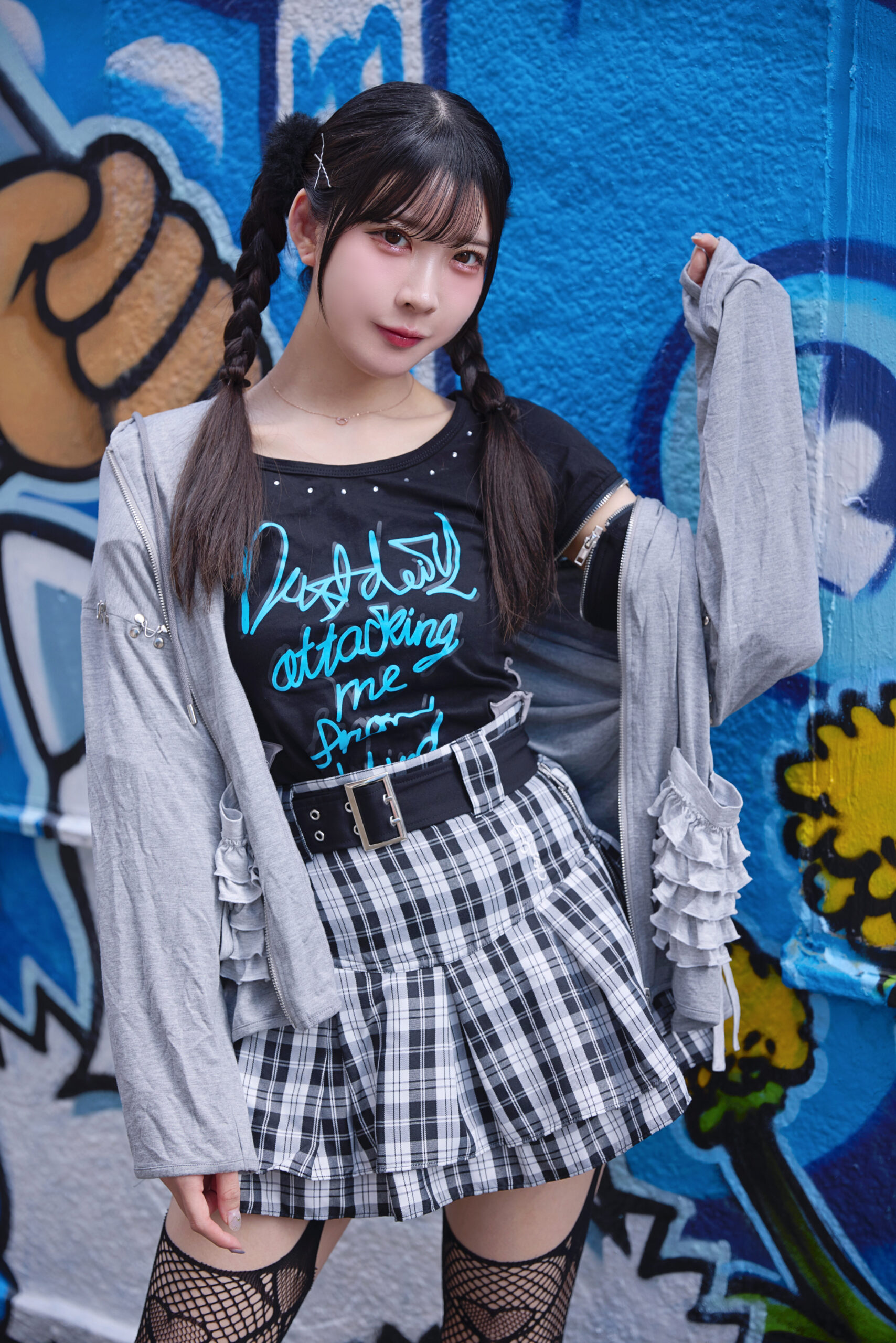 雨已耶いちかちゃんはチェックフリルスカートが目を引くパンクコーデ