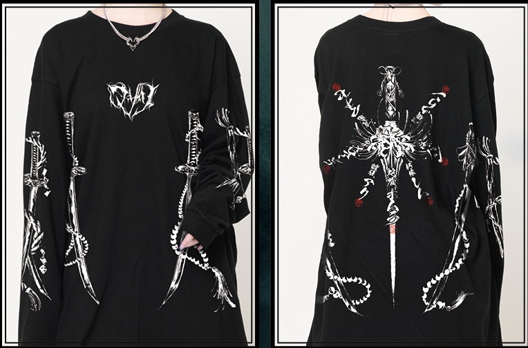 フロントにはマザリの名、力強さと妖艶さを兼ね備えた和刀は袖にも配置。