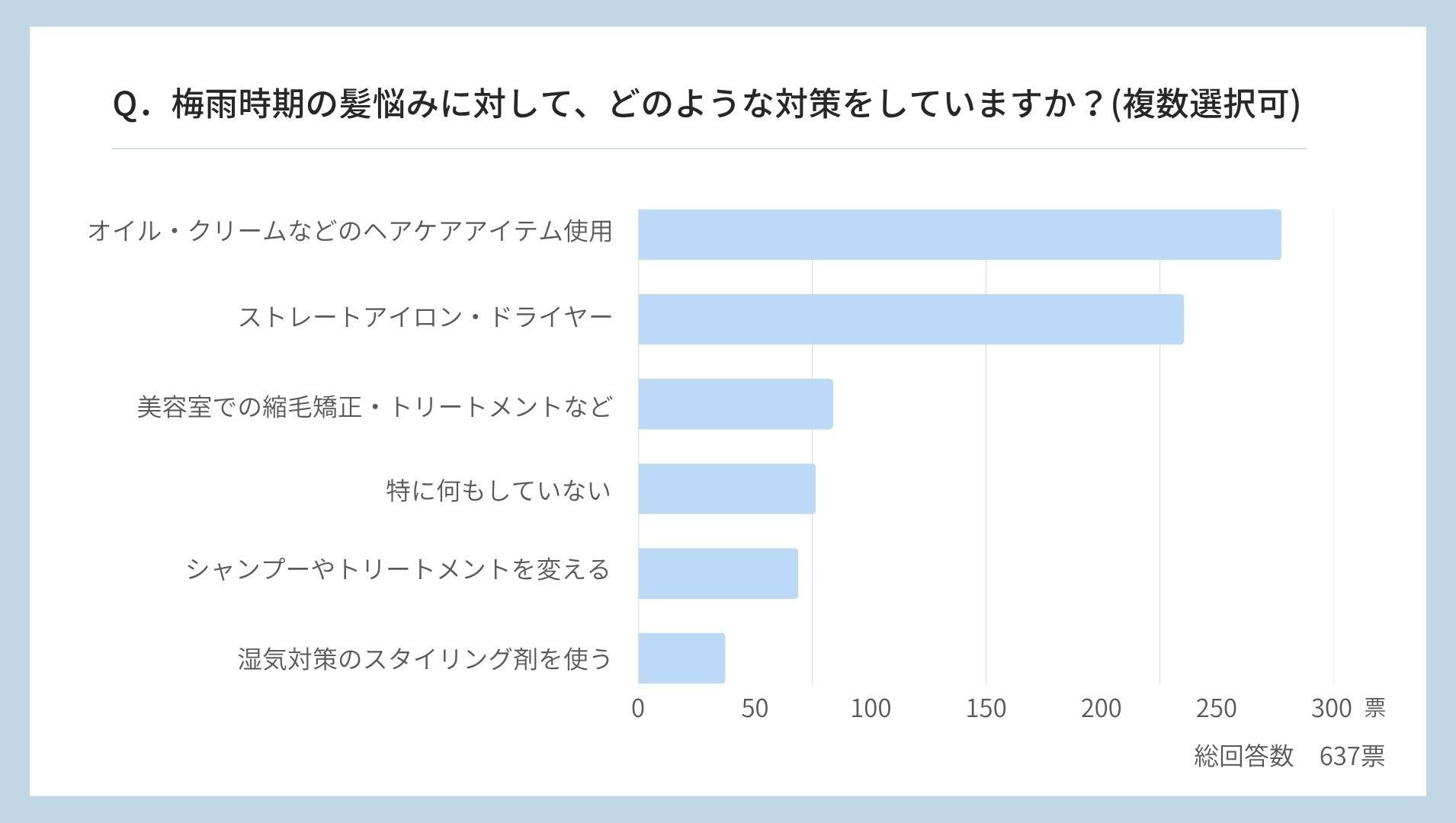 梅雨時期の髪悩みに対して、対策方法を尋ねたところ、
