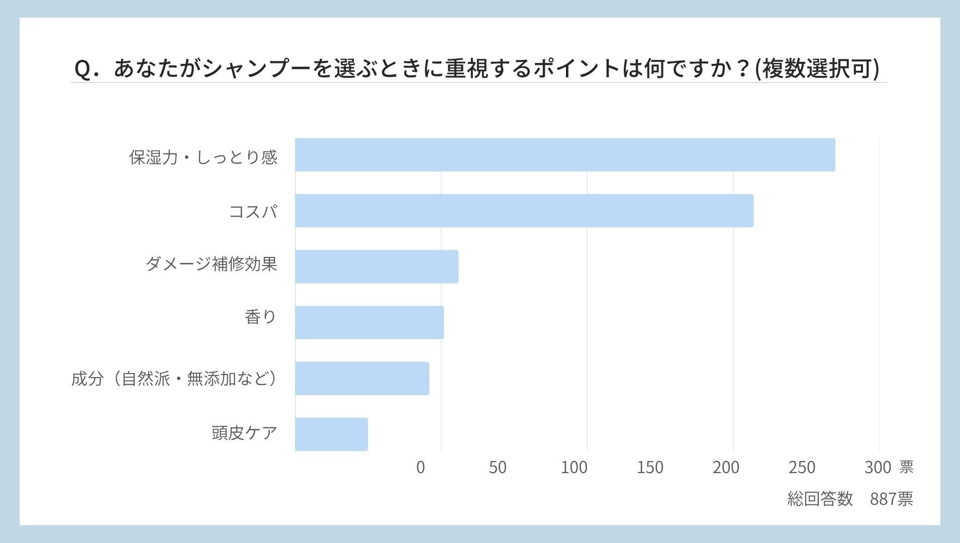 最後にあなたがシャンプーを選ぶ際に重視するポイントは?と尋ねたところ、