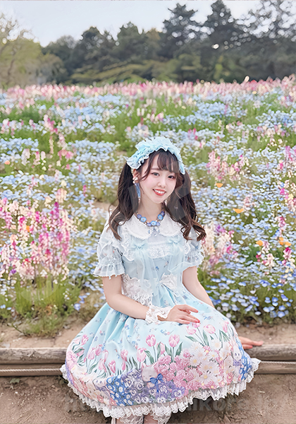 お花畑に同じお花柄のロリータで行くと、お花畑の妖精さんになった気分になれます(笑)