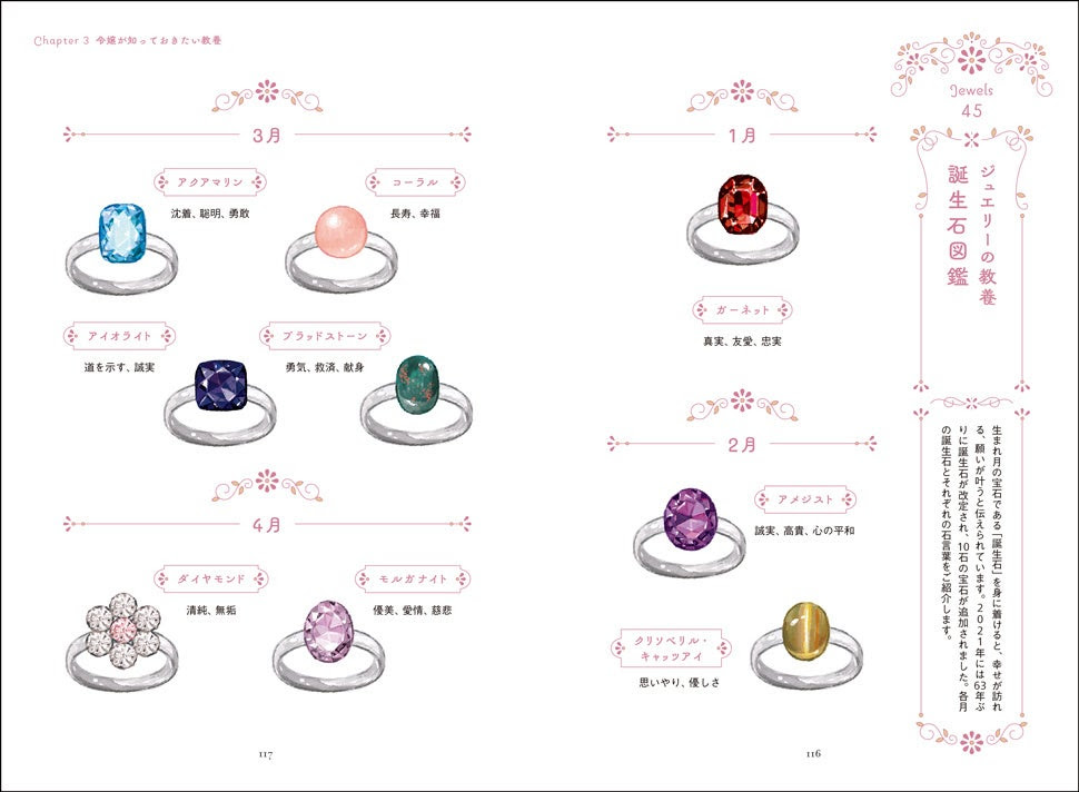 ▲お嬢様なら知っておきたい、誕生石と、その宝石に込められた言葉も紹介。