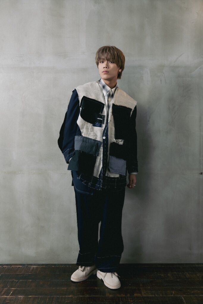 LIL LEAGUEのリーダー・岩城星那さんがモデルを務めるのは、仕立ての最中のような遊び心満載のジャケットが主役のスタイリング。
