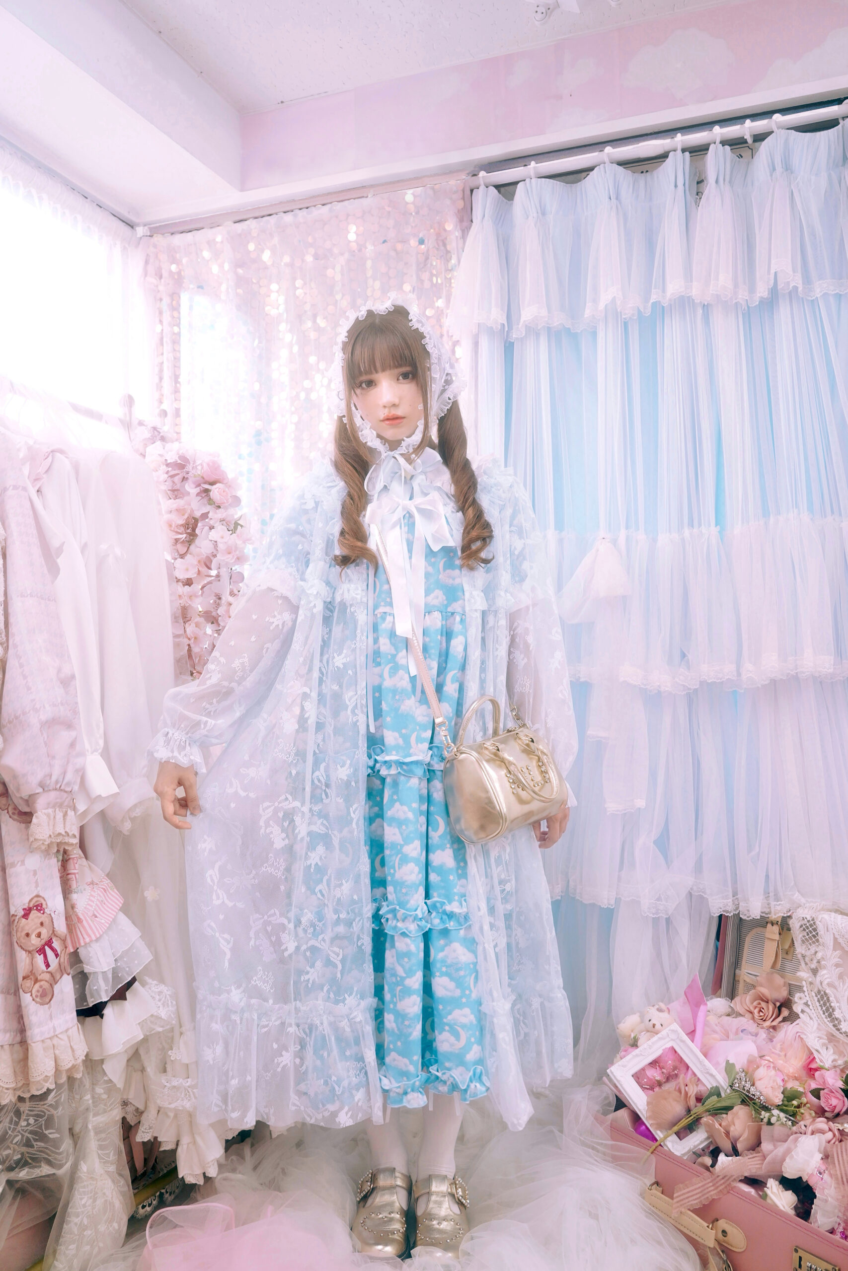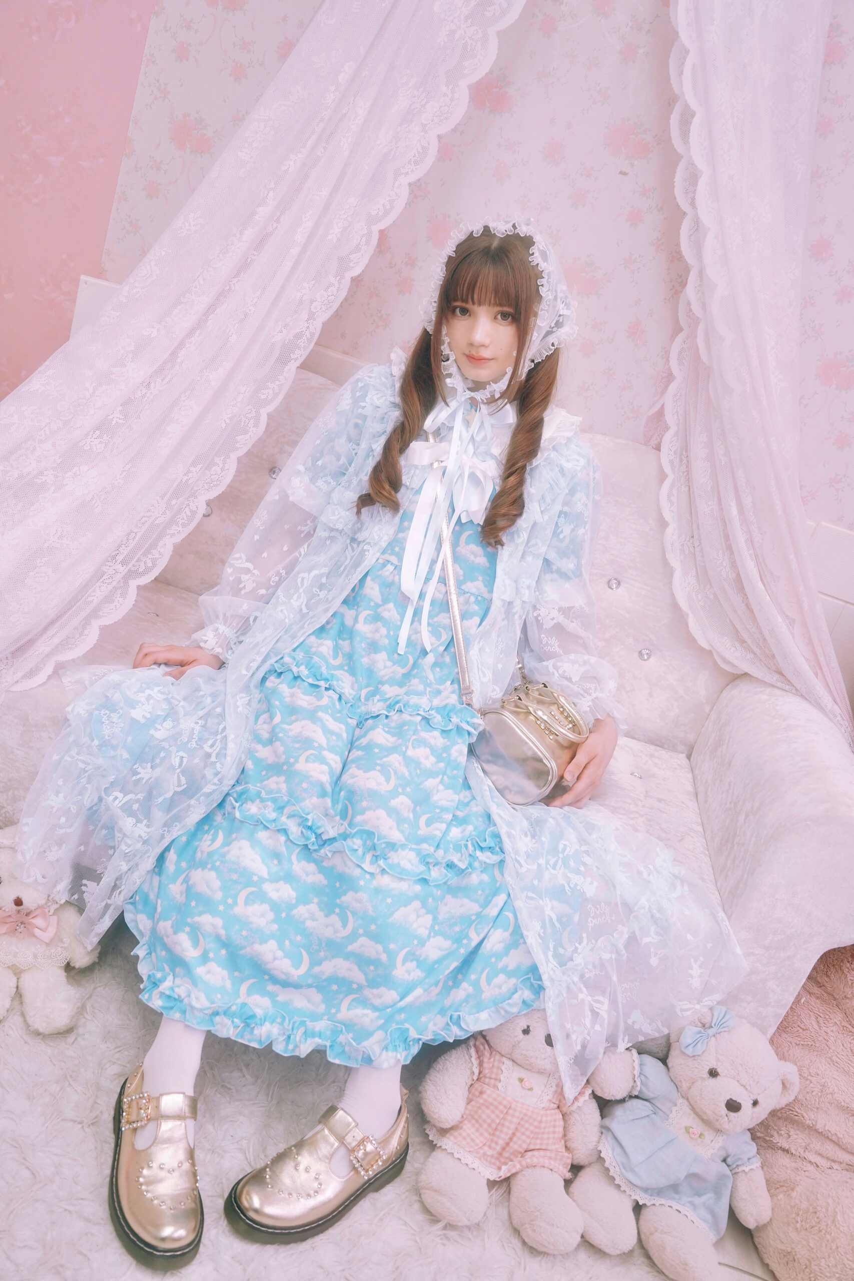 散りばめられた雲から覗くのはゴールドのお月様。胸元のリボンにはお星様が輝いています⭐