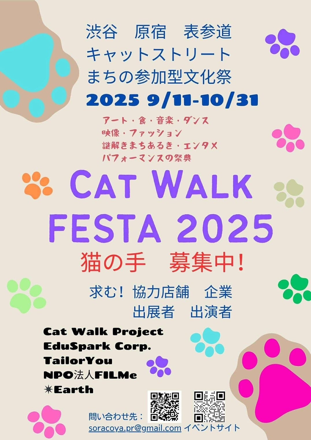 原宿・表参道・キャットストリート周辺でこの秋行われるCAT WALK FESTA 2025では、猫にまつわる楽しいイベントを企画中です。