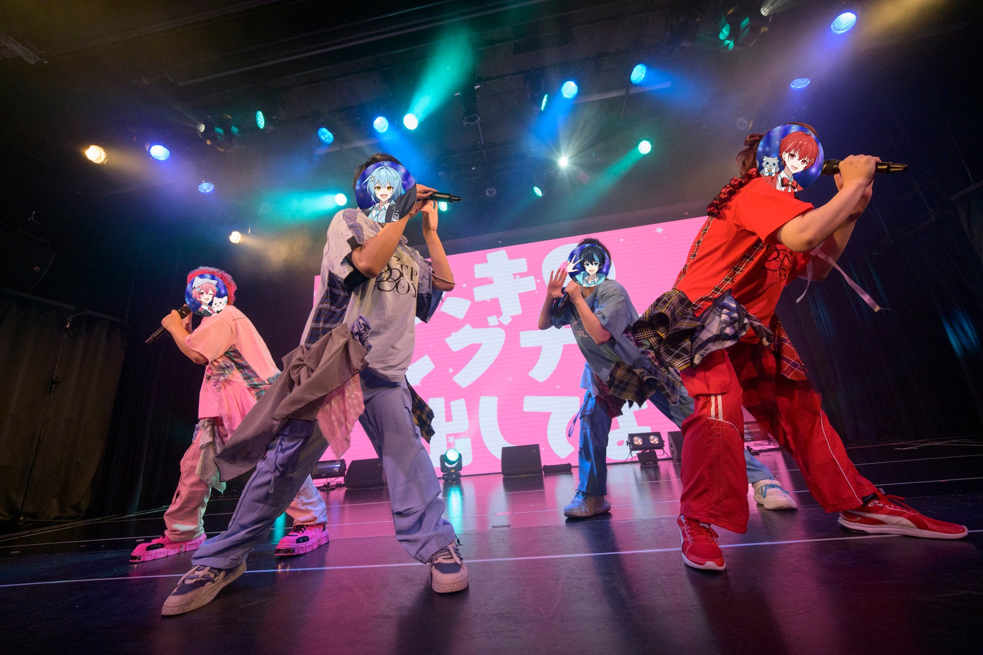 「みんなでこのライブ、作ってます。だからリスナーさんたち、余すことなく受け取ってください!」という十六夜ルクスの煽りから、後半戦スタート。『ストロベリー☆プラネット!』では、しぶらいんが「サインボールを投げるから、みんな全力でアピールしてね!」とリスナーに伝える。曲の合間にボールを投げるメンバーに、リスナーがペンライトで推しカラーをアピールしていた。続く『苺色夏花火』もメンバーを交代して、同様にサインボールのプレゼント。『ファタール』は灰染凜とせーあのユニットが会場を2人の色に染め上げる。あまねのデスボイスが印象的な『ヒバナ』に関しては、「この曲は昨日まで、あまねは音声で参加していたんだよ。やっぱり生だと違うね」と、はりまが秘話を伝えた。