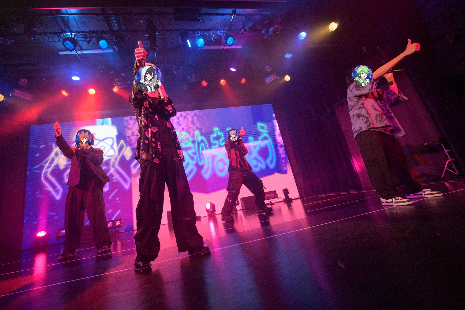 煽り映像のあと、かんパリ・しぶらいん・しんどうじ・灰染凜のテンションぶち上げな個性派チームが、ホストクラブをテーマにした『Club A×C』を歌い上げる。衣装も含めて、いつの間にかharevutaiがホストクラブに!?一方、和な衣装と扇子で『最終決戦』をビシッと決めてくれたのは十六夜ルクス・つきしろやしろ・はりま・ものくろのダンスも歌もキメてくれるチーム。最高潮の盛り上がりを見せ、ライトが落ちると、間髪入れずアンコールの声がリスナーから巻き起こる。
