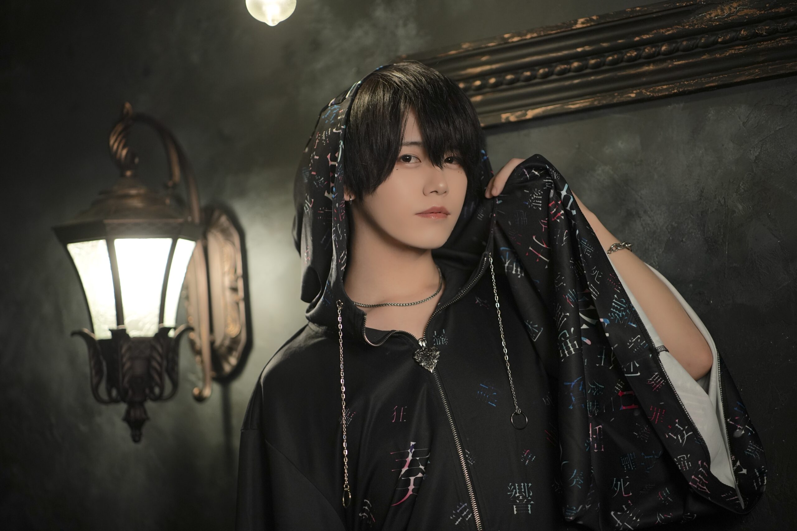 フードから覗く黒髪と、シャープな表情が醸し出すミステリアスな雰囲気。