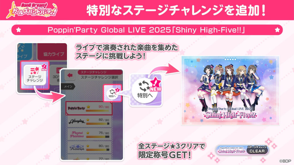 •【新情報】「ガルパ」にて、ライブで演奏した楽曲を集めた特別ステージが、ステージチャレンジ機能に追加!