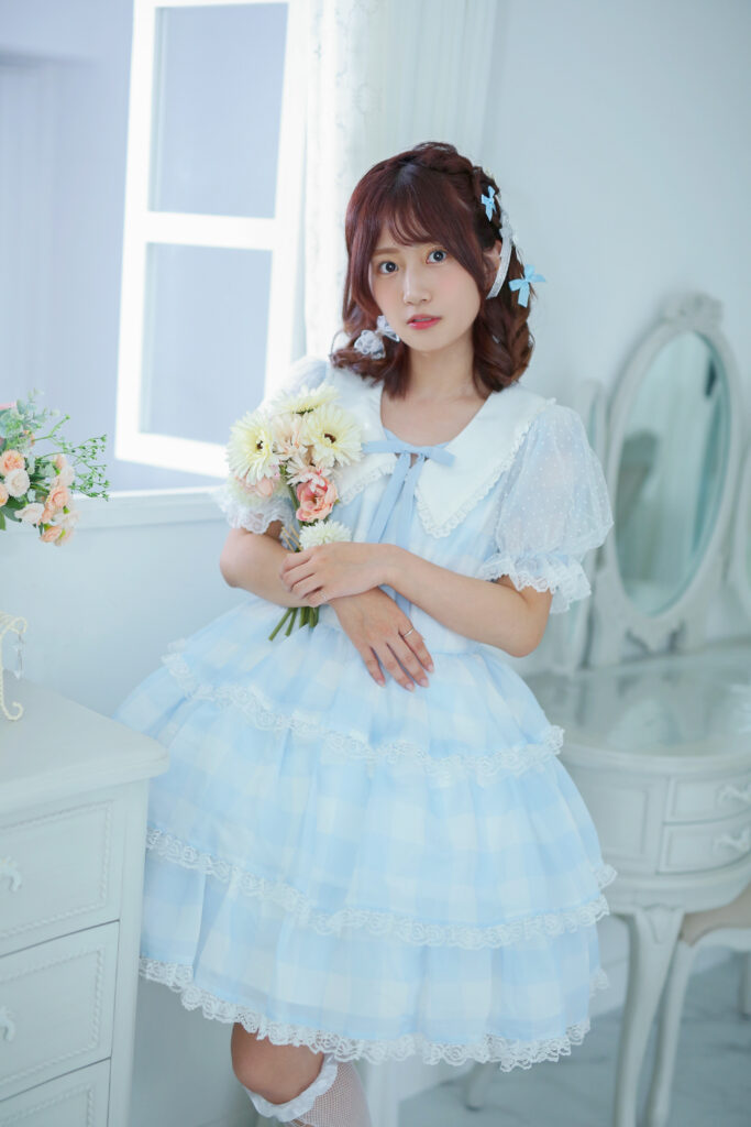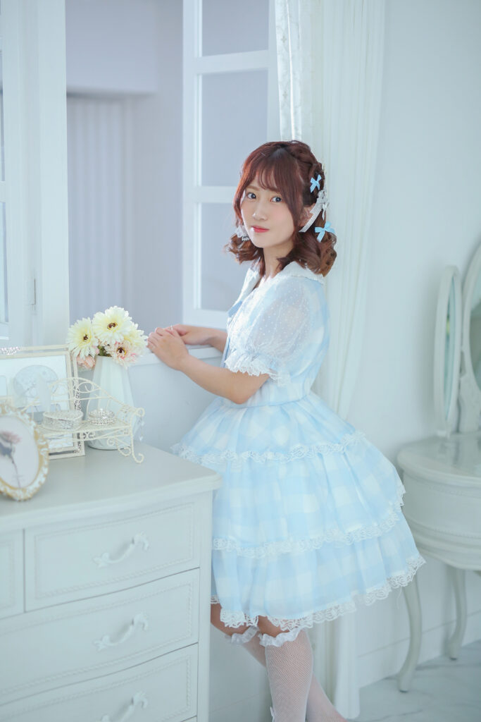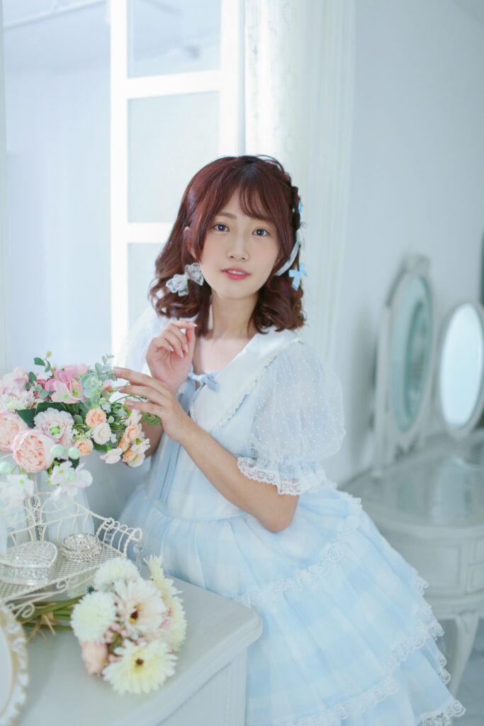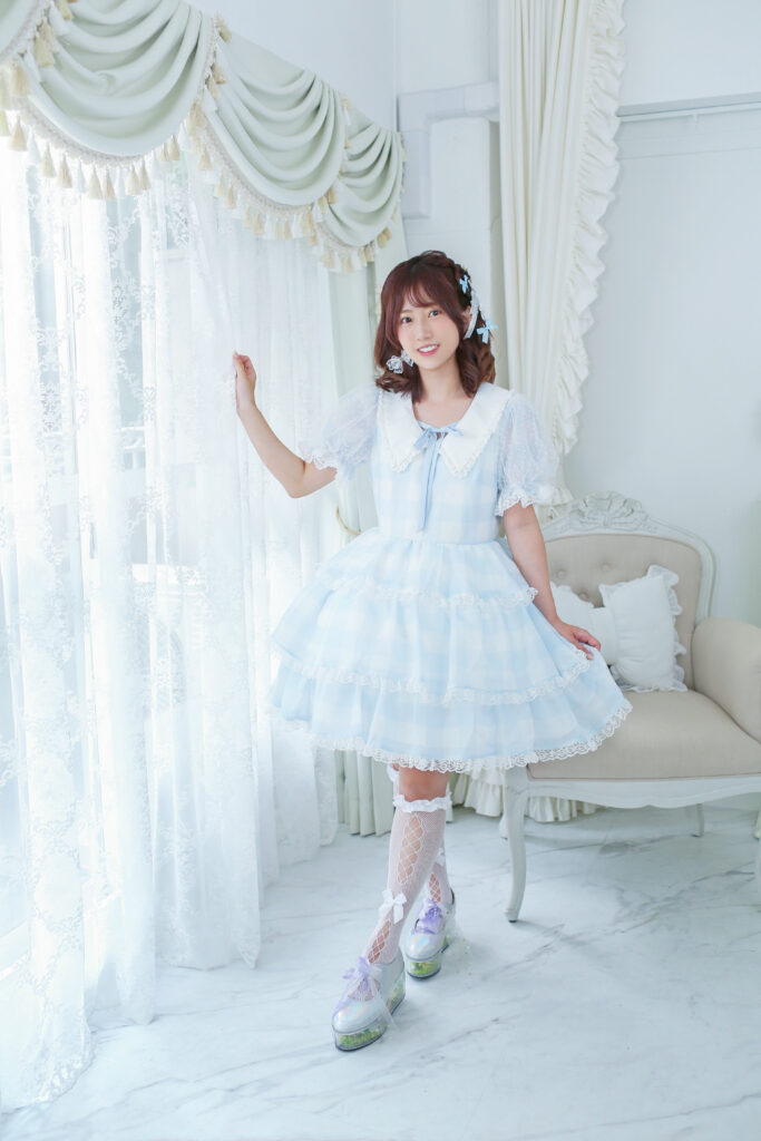 スカートのパニエが入った時のふわっと広がるボリューム感がとても印象的でした。チェック柄も大好きなので心躍りましたし、袖や襟、リボンもキュートで、夏らしい爽やかさもあってお気に入りです。撮影も緊張せずに楽しめましたし、お洋服をどう見せるかを考えるのが新鮮で、とても刺激になりました。またぜひ挑戦してみたいです!