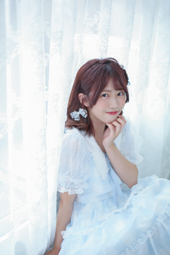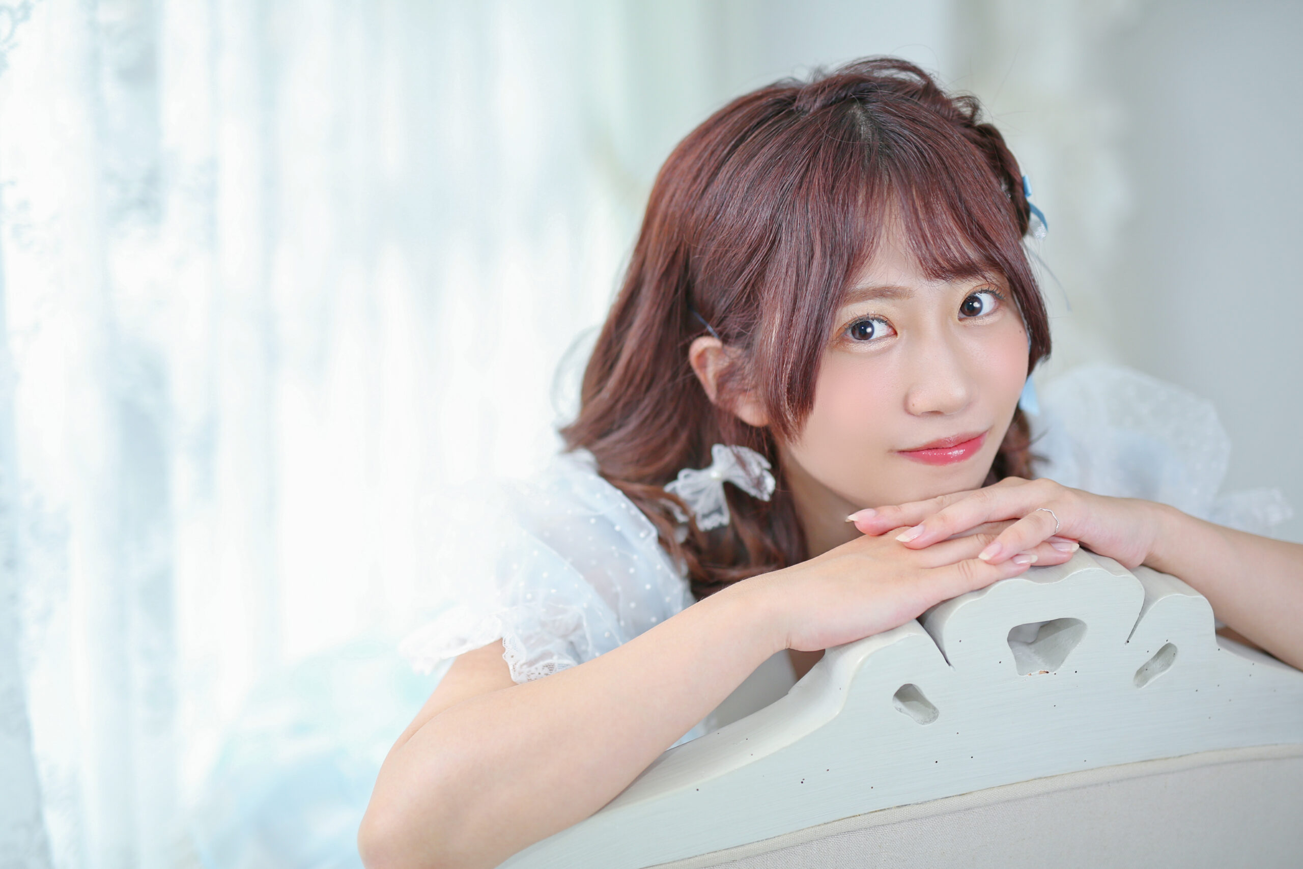 美鈴あおい とっても素敵な衣装を着させていただけて、本当に楽しかったです!メイクさんにも可愛く仕上げていただいて感謝しています。青色が私のメンバーカラーですし、名前も「あおい」なので、水色系のお洋服は特に嬉しかったですね。