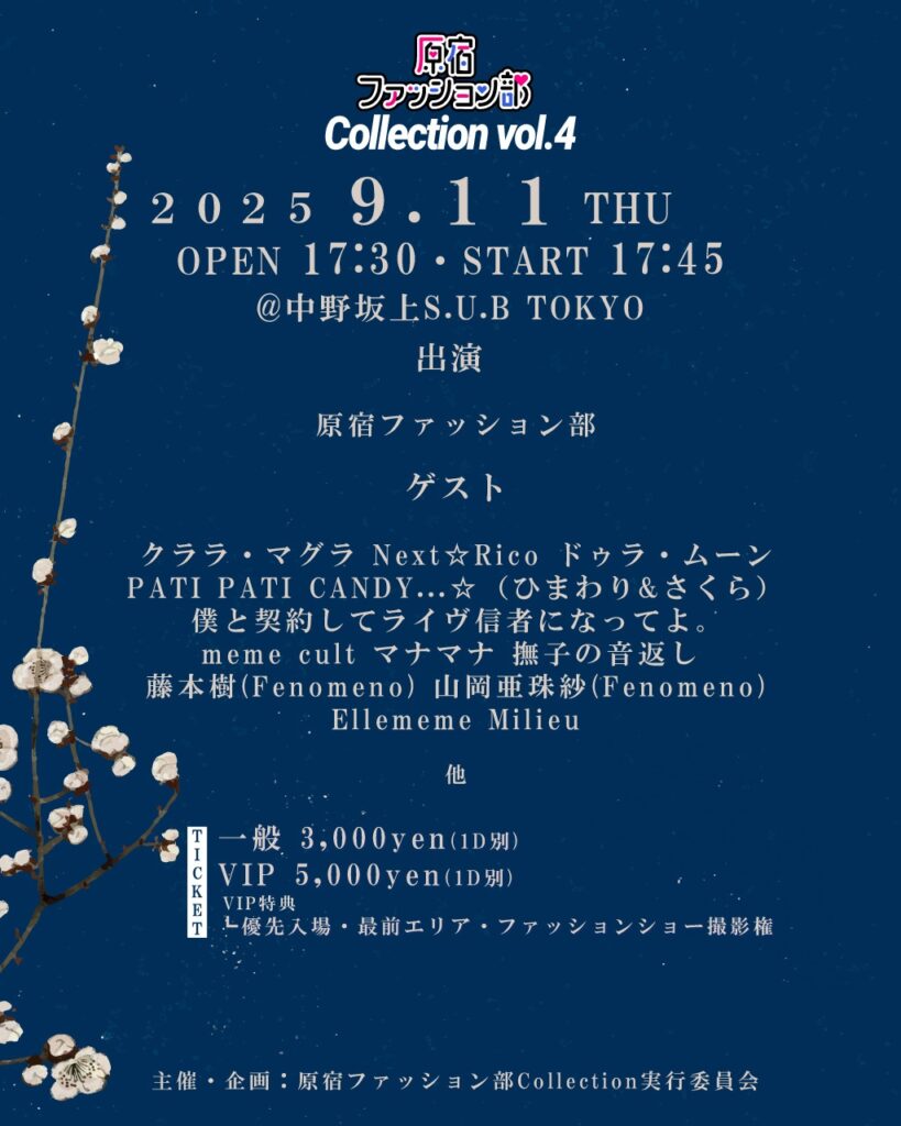 2025年9月11日(木)、中野坂上S.U.B TOKYOにて「原宿ファッション部Collection vol.4」」が開催!