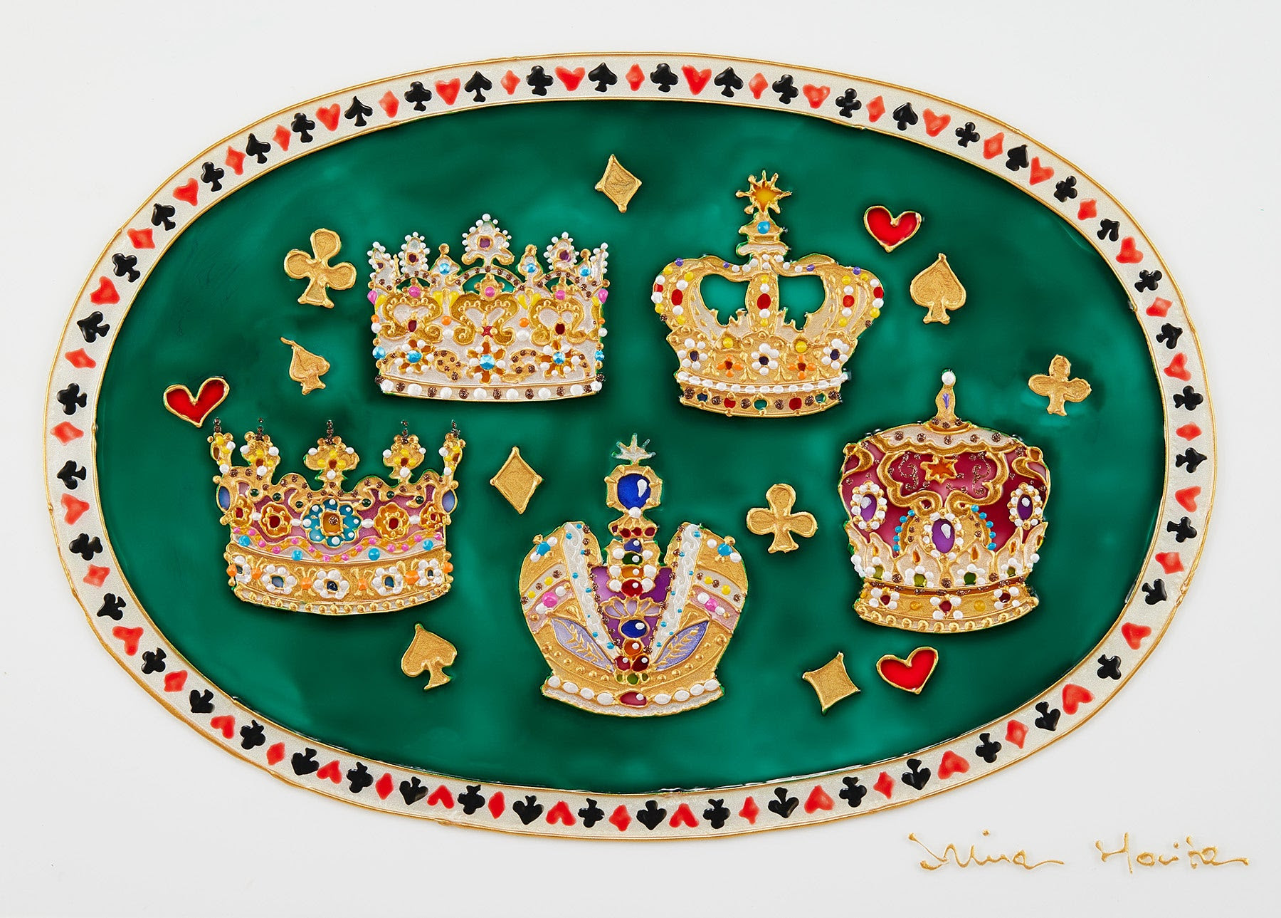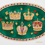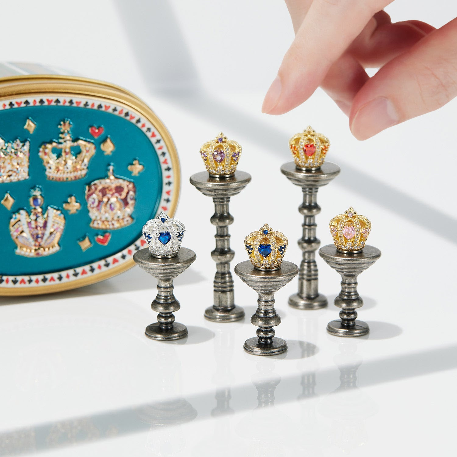 『ミニチュア王冠マグネット』は、第一弾『ネコのトランプ缶』に封入した王冠マグネットよりも、さらに細かく立体的な仕上がりとなりました。細かなビジューがきらきら輝く、1.3cmのミニチュアサイズの王冠をお楽しみください。