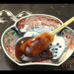 「香ばしさが他のみたらしとは違う!」と豪語する堂島さん。国産の米粉で作った団子を紀州備長炭で炙り、湯浅のたまり醤油と利尻産昆布を煮詰めたタレにたっぷりと絡めたのがその理由です。