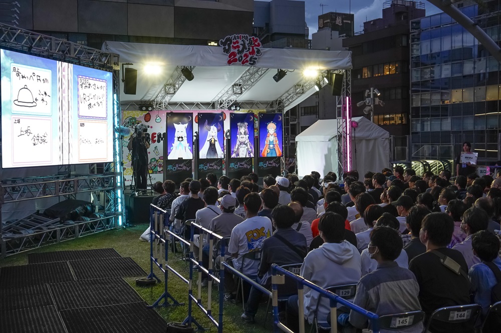 “VTuber×声優”による「ABEMA」オリジナルレギュラー番組からは、ホロライブから白上フブキさんとラプラス・ダークネスさん、そして声優陣から上坂すみれさんと高野麻里佳さんが登場。出演者4人が即興でアイドルを結成するというショート劇場「ホロごえ即興劇場〜アイドル結成編〜」からスタートし、イベント冒頭から大きな拍手と笑いが巻き起こりました。テーマパーク風のアトラクションを舞台にしたミニゲーム企画や、お題となるワードを漢字一文字で表現する大喜利的なコーナー、画面に流れる長文のナレーションを“噛まず・間違わず”に読み上げるアナウンサーばりのスキルが試されるコーナーなど、約90分間にわたって、さまざまなバラエティ企画を盛りだくさんで展開。ステージ後半では、観客が“ホロごえ様”となっておみくじを引き、それを出演者が再現するという参加型コーナー「ホロごえ様の言うとおり」も実施され、会場は終始大盛り上がりとなりました。