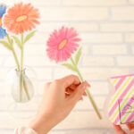 お客さまはシーンやデザイン、花言葉などから好みのコーヒーと花を選び、選んだコーヒーと同じデザインのフラワーベースにペーパーフラワーを挿してお渡しします。