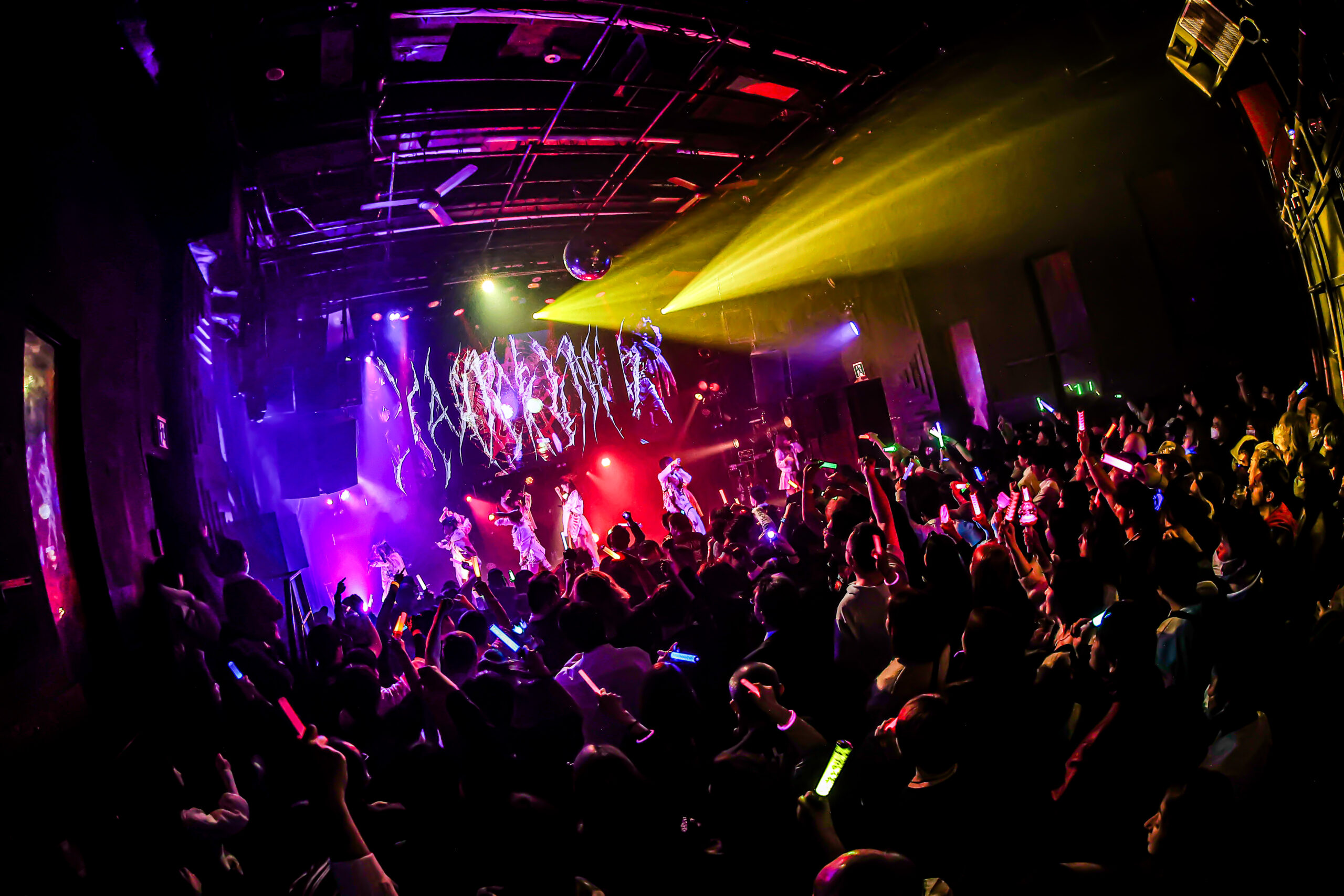 「百鬼夜行」ではツーバスが地鳴りのように鳴り響き、フロアの最高温度が更新される。シンセサイザーのイントロから始まる懐かしいナンバー「空想ケセラセラ」にフロアが狂喜乱舞しながら「dystopia」で宴は幕を閉じた。
