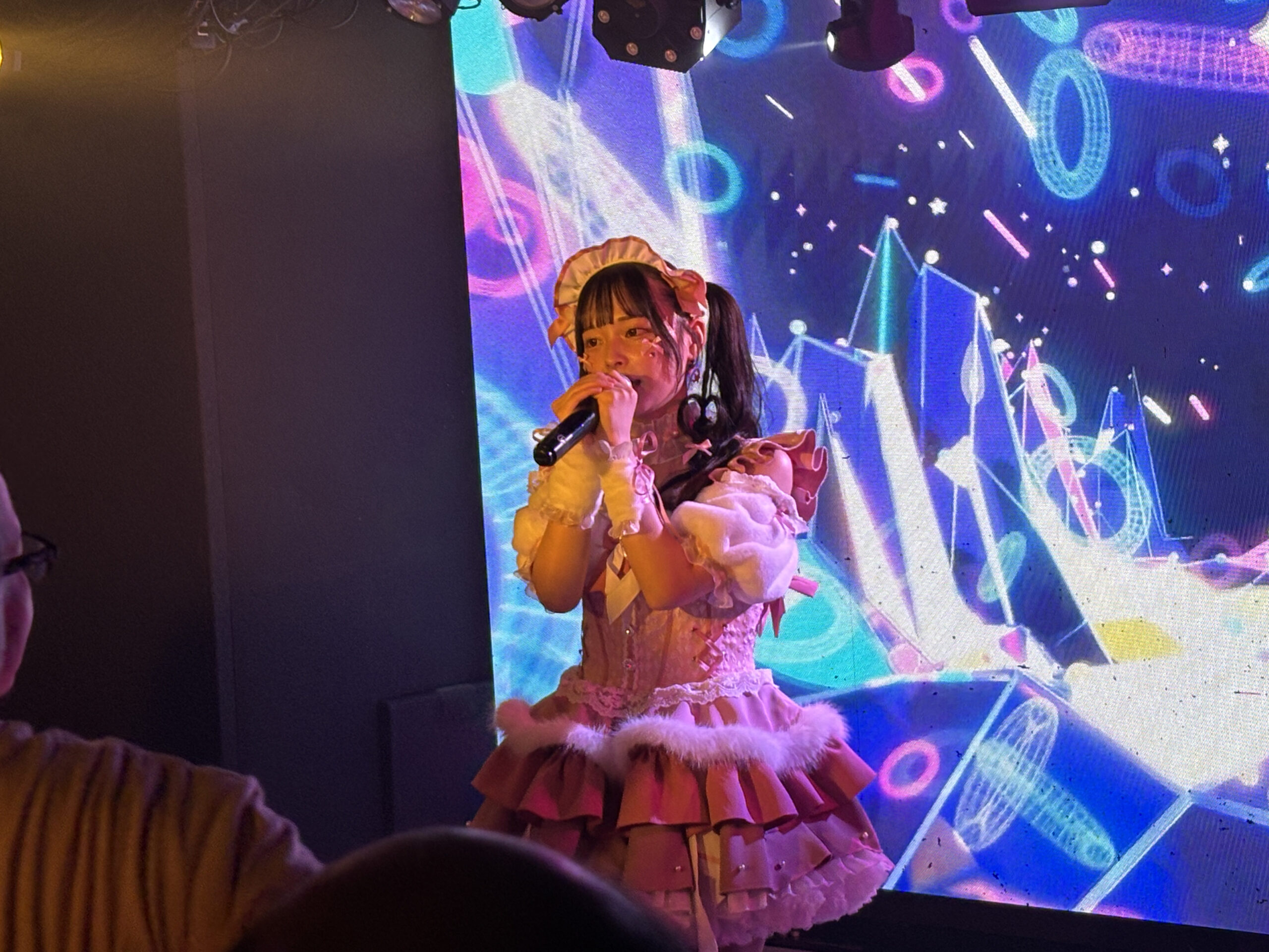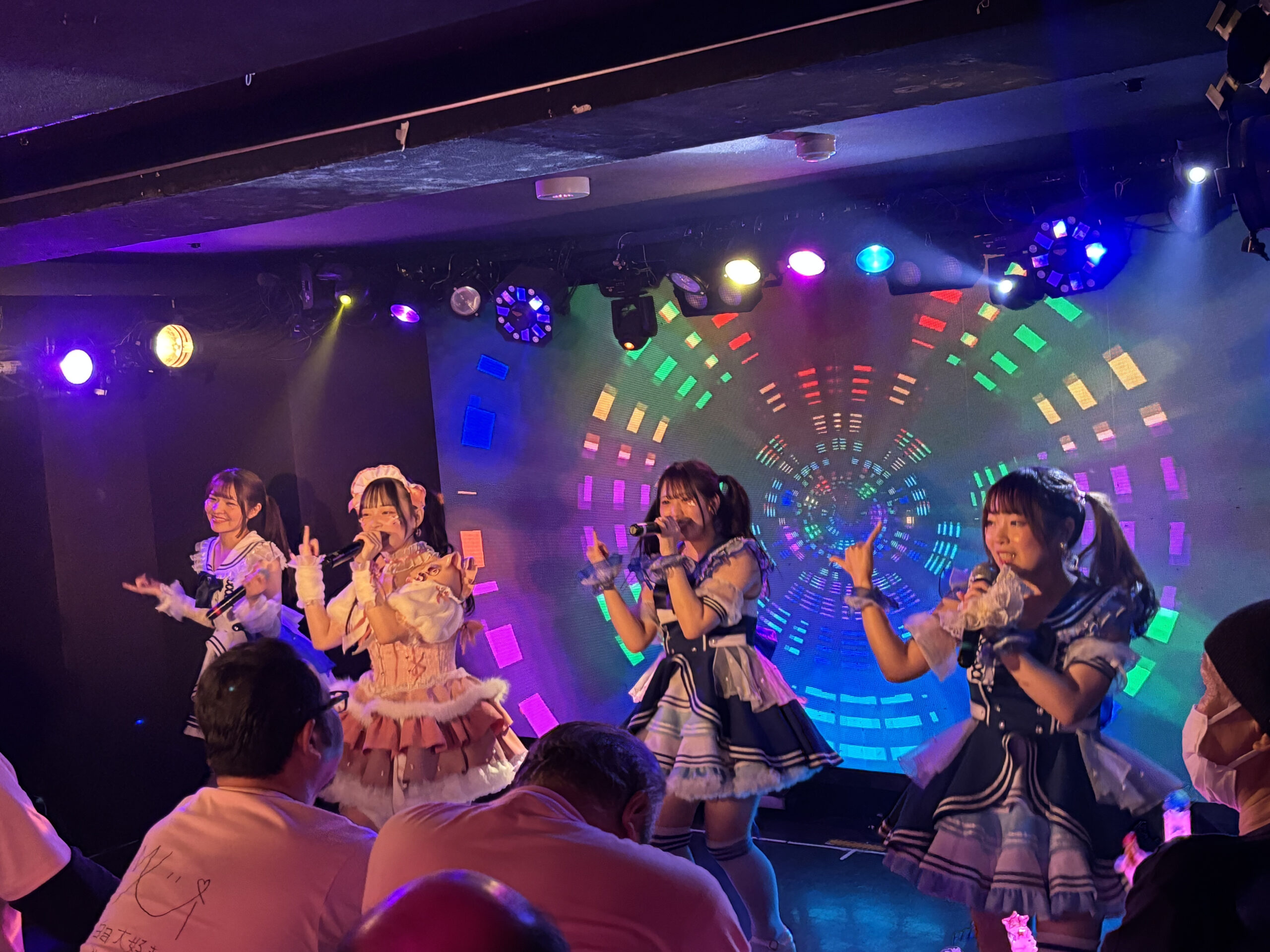 この日は、主役の夢乃みゆが、メンバーカラーと同じピンクのロリータ風の衣装を身につけて登場。頭に付けたヘッドドレスもチャーミングなポイントになれば、他のメンバーのブルーの衣装と綺麗なコントラストを描くことで、より”愛らしさ”を際立たせていたことも、先に伝えておきたい。