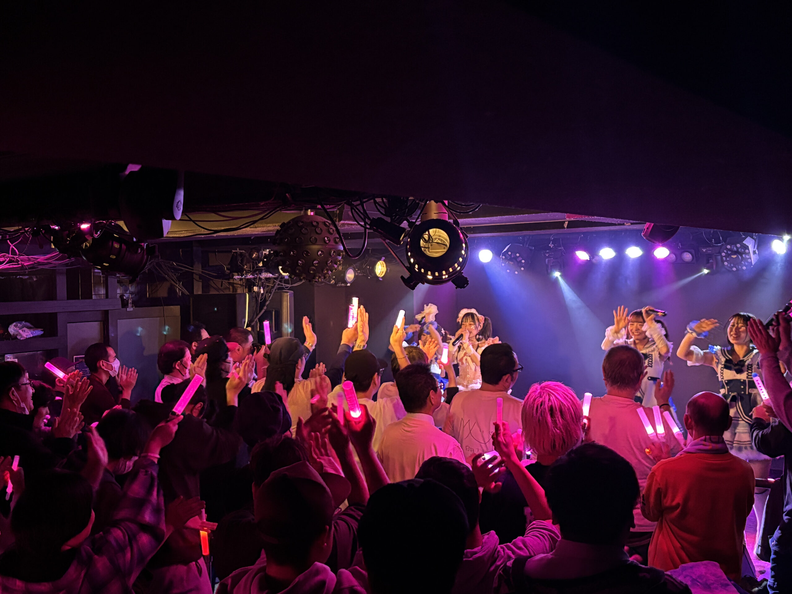 最後にantaresは、この場をふたたび熱情した暴走空間に染め上げようと『恋愛暴走列車』を歌ってくれた。フロア中から飛び交う声も、これまでで一番ボリュームが上がっていたように、互いに、爆発しそうな「大好き」の気持ちを全力でぶつけあっていた。夢乃みゆのラップや甘い歌声に理性のストッパーを壊された観客たちが、胸をキュンキュンしながら騒ぎあう。まさに、嬉しいカオスな世界がそこには広がっていた。