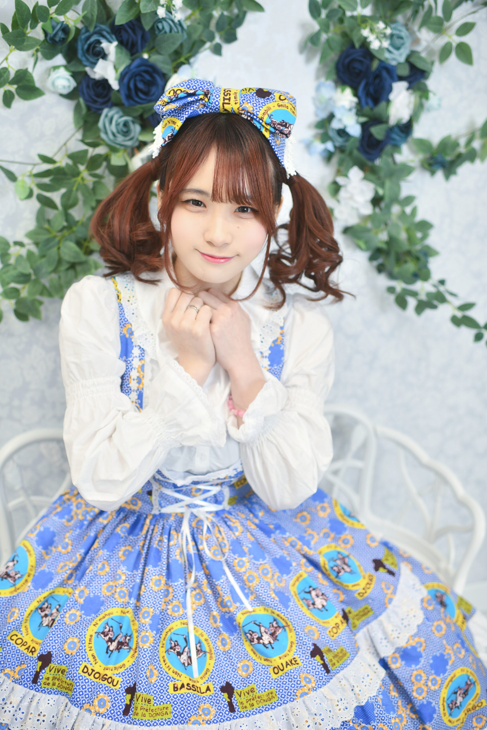 存在感のある大きなリボンがアクセントとなり、全身の鮮やかな色彩をより一層美しく際立たせています。
