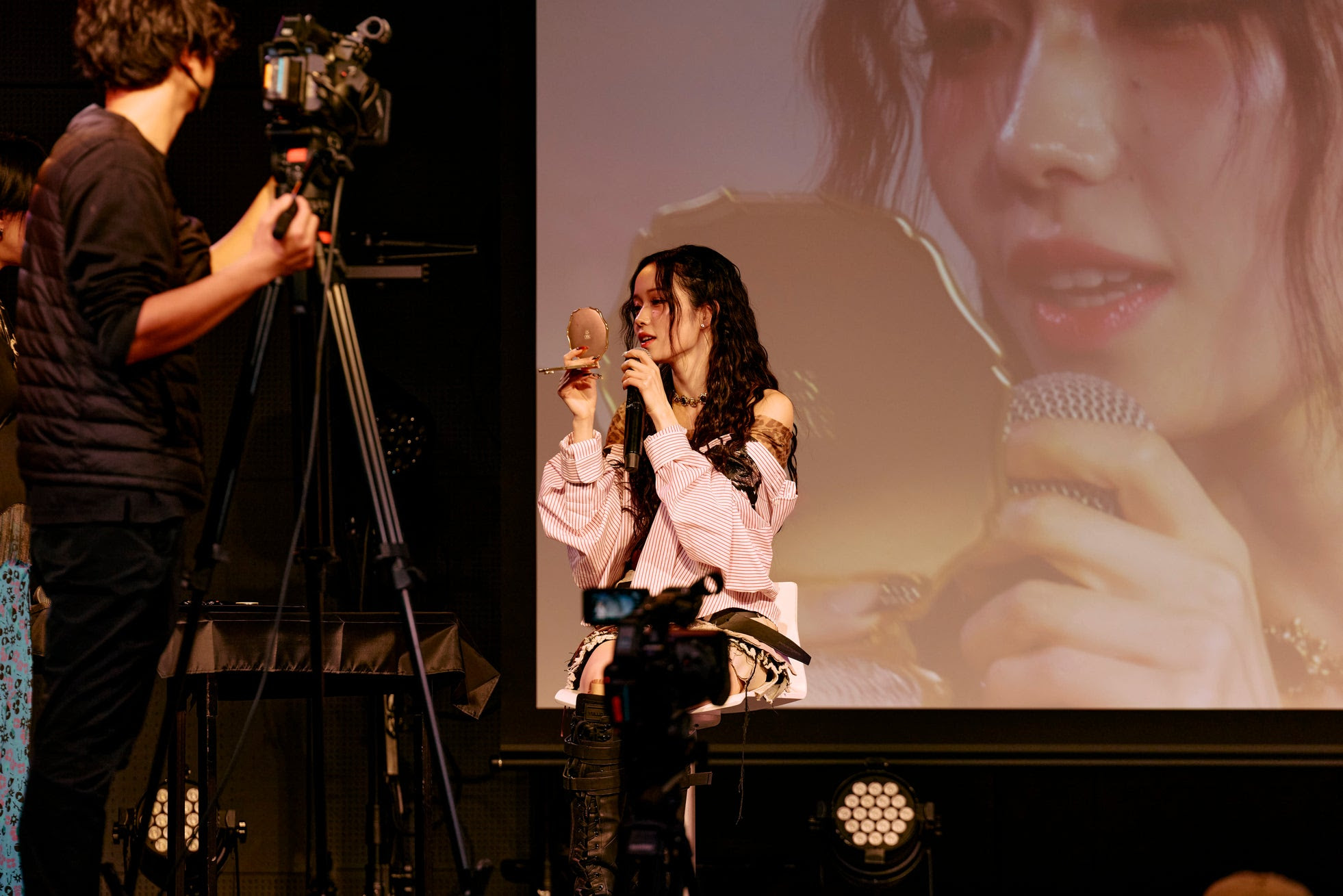 イベントの締めくくりとしてMYERAが、新曲『Crushproof!』を含む全5曲のライブパフォーマンスを披露。Kotoは、「新曲は、『リップを塗ることで日常の自分が少し強くなる、明日に一歩踏み込む勇気をもらえる』というメッセージが込められた曲ですが、私たちMYERAも、STYERA(ファンの呼称)にとってそんな存在、皆さんに勇気を与えられる存在になれていたら嬉しいです」と語った。
