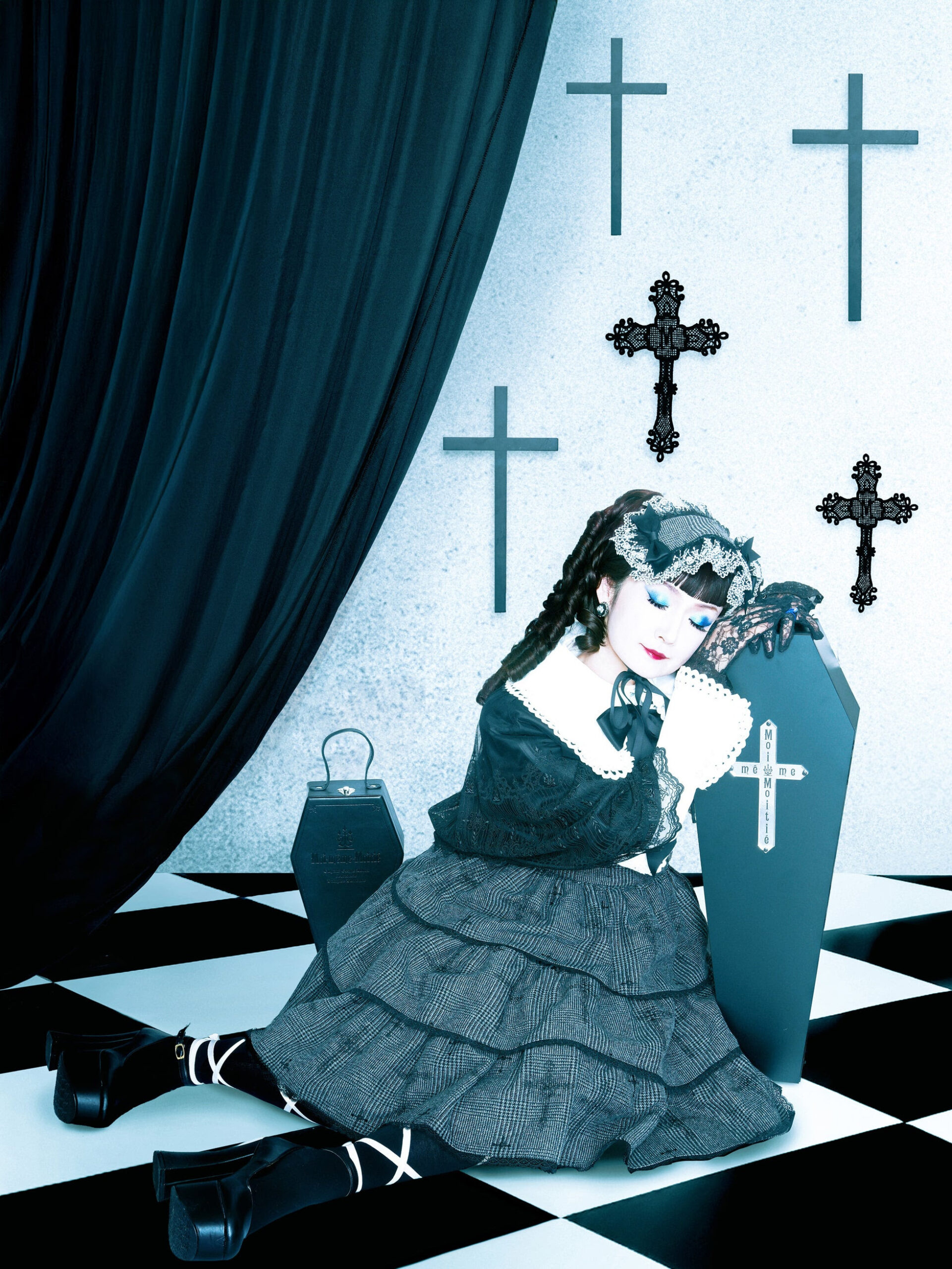 Manaのプロデュースのもと、Moi-meme-Moitieの洋服と、エレガント・ゴシックの世界で新たに表現された千秋の姿は、彼女が歩んできた歴史と、Moi-meme-Moitieが築いてきたゴシックロリータの系譜が必然的に交差した、特別で唯一無二な世界観を生み出しています。