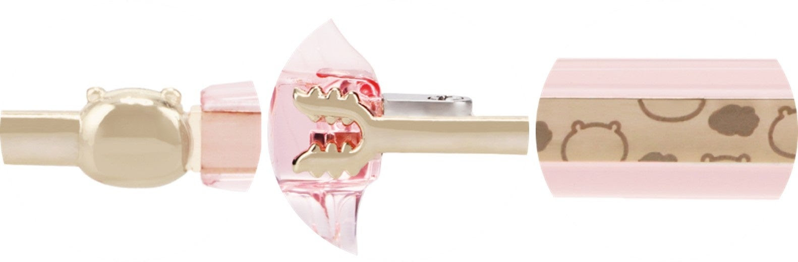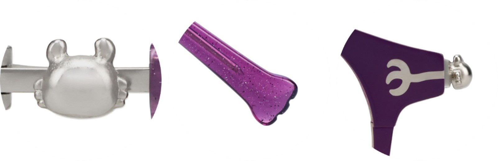 Point1.ハチワレのシルエットパーツがさりげないアクセントに。2.ハチワレの特徴的な”ワレ”の部分を表現。3.ハチワレが大切にしているリボンをメタルの曲線と併せてデザイン。