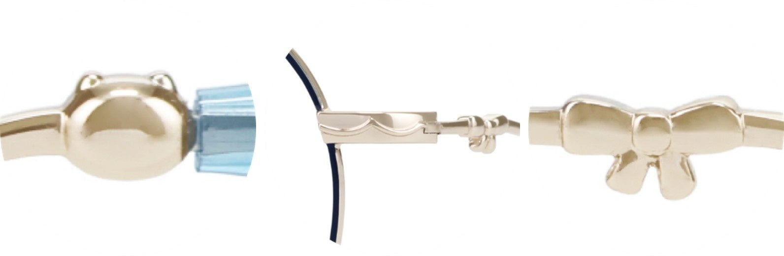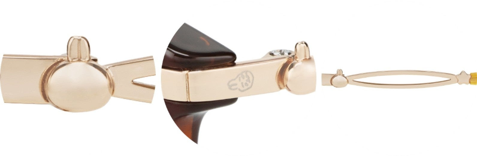 Point1.モモンガのシルエットパーツがさりげないアクセントに。2.モモンガのかわいい手を再現したテンプルエンド。3.つる先とは対照的なこの手の持ち主は…?
