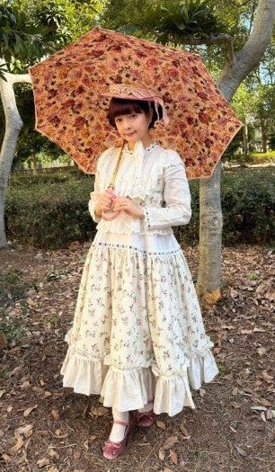 クラシカルなブラウンの色合いで、クラシカルロリータとの相性バッチリです。チェックと花柄の組み合わせが上品です。
