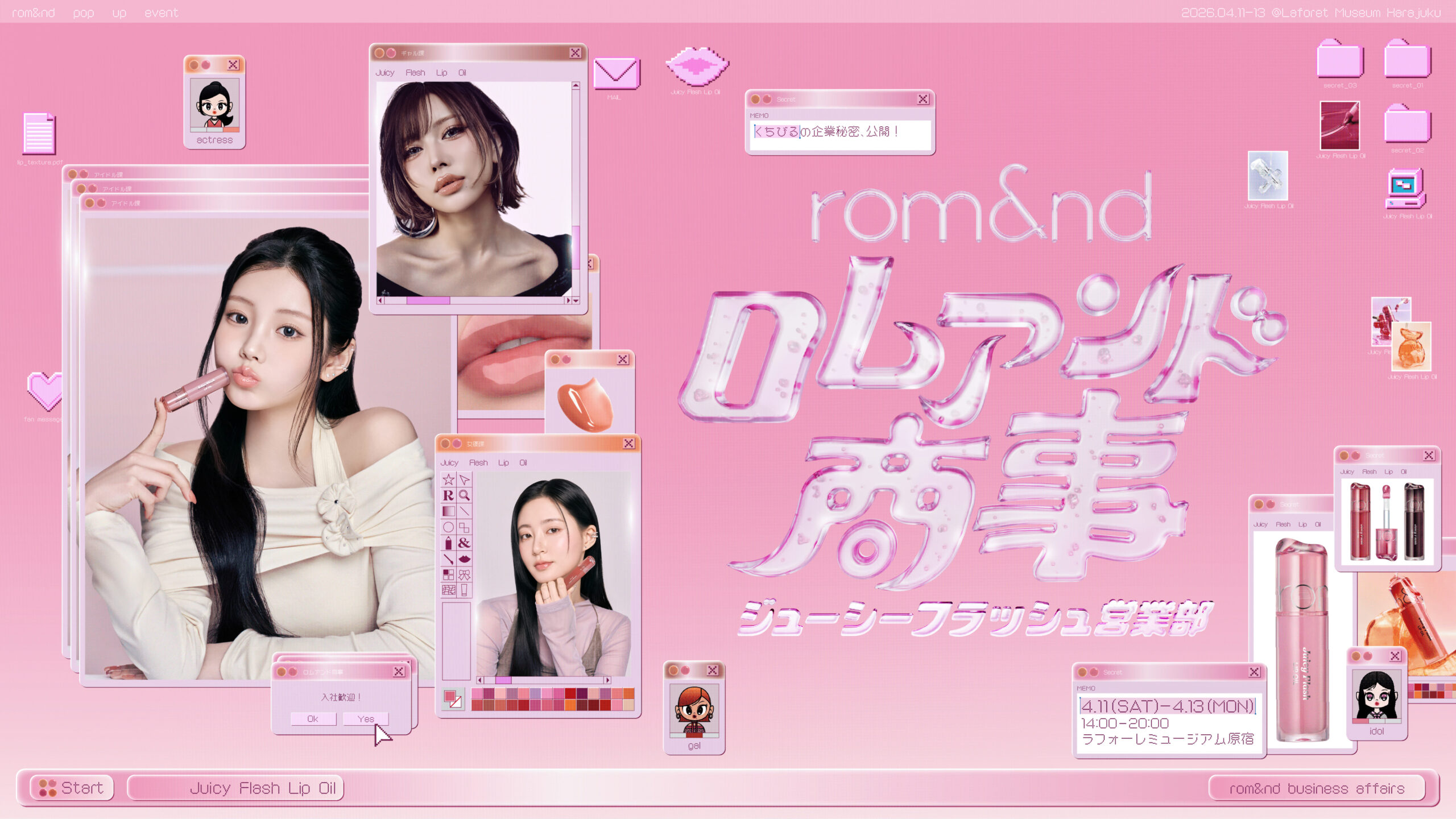 3つの”なりたい私”を体験。ロムアンド商事の世界観で楽しむ新作リップオイル。オタクが出勤する”00年代風”オフィスが原宿に出現!?4月11日(土)から3日間限定開催