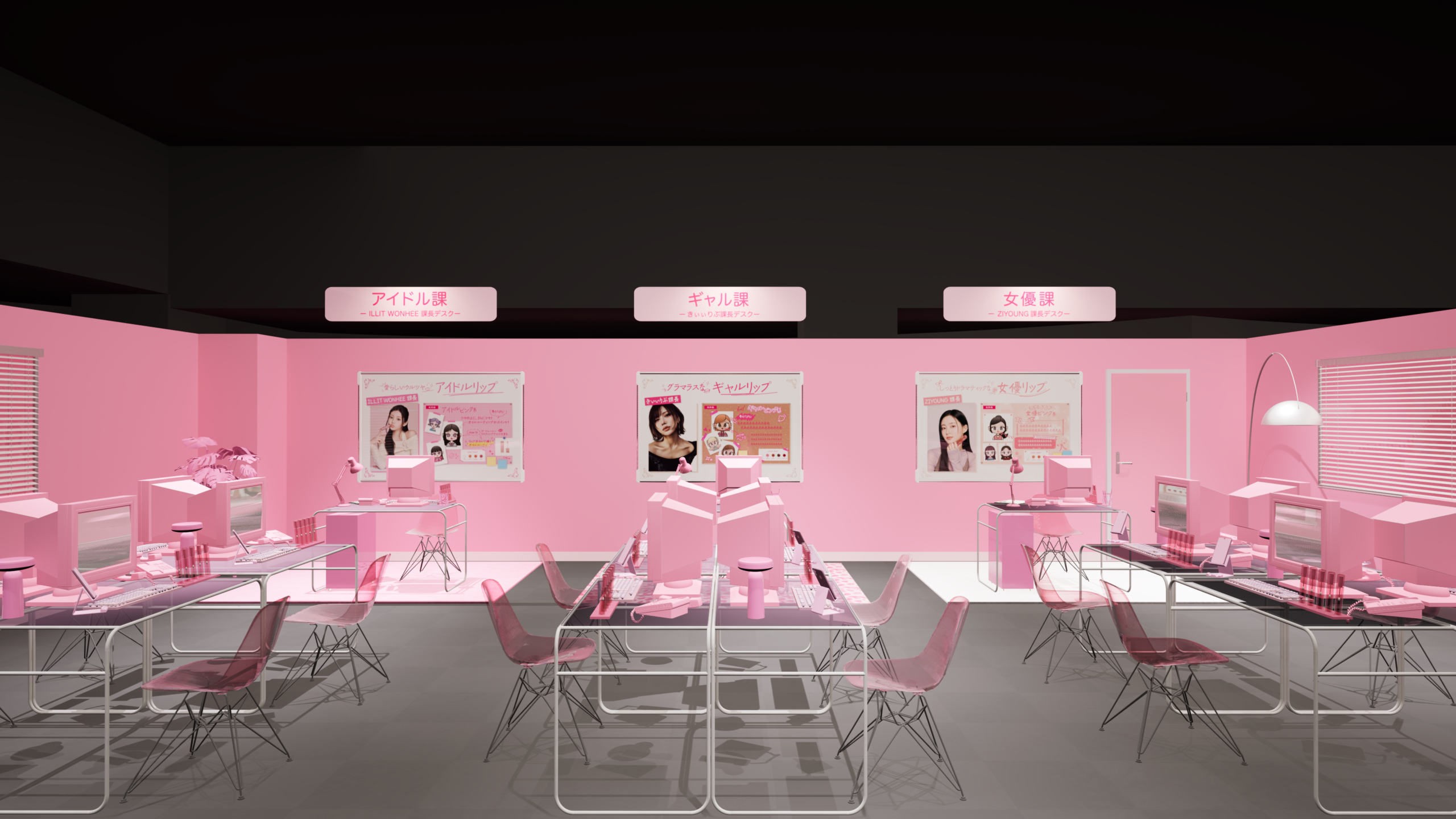 アイドル・女優・ギャル3つのルックを体験できるデスクコーナーは必見!