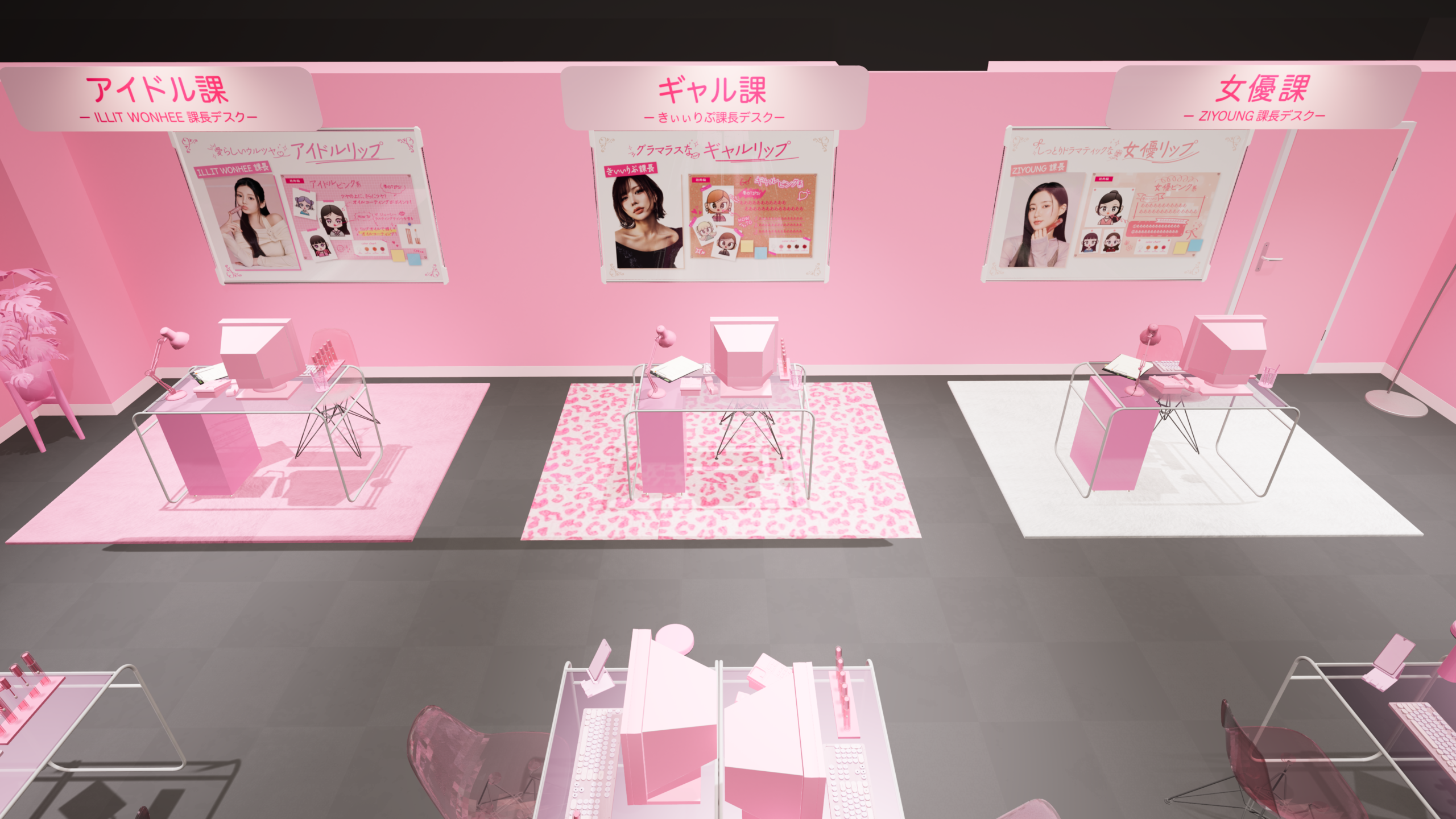 アイドル・女優・ギャル3つのルックを体験できるデスクコーナーは必見!